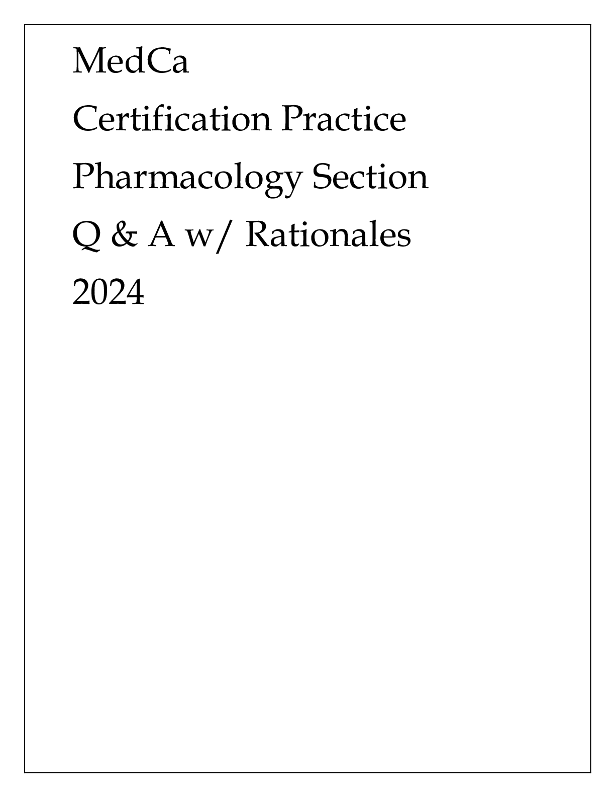 *NURSING > EXAM PROCTORED > MedCa CERTIFICATION PRACTICE PHARMACOLOGY SECTION Q & A WITH RATIONALES 2024
