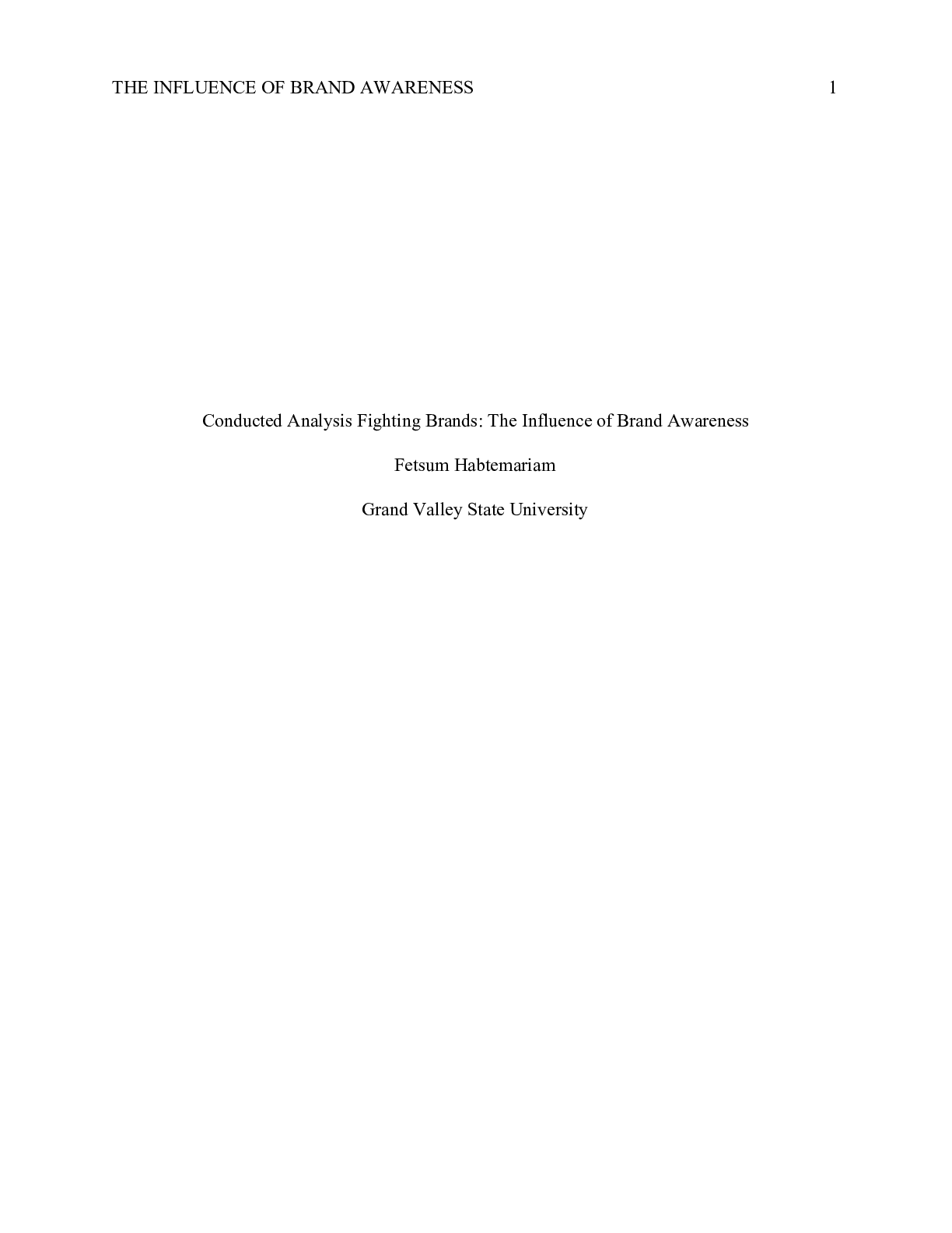 Economics > Research Paper > Research Paper > Grand Valley State University ECON 210 Brand Awareness: Conducted Analysis Fighting Brands: The Influence of Brand Awareness