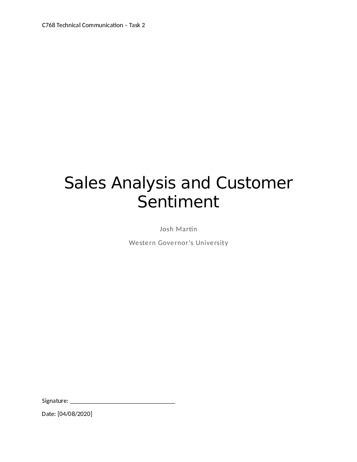 Information Technology > Research Paper > Technical Communication Sales Analysis and Customer Sentiment Western Governors University IT C768