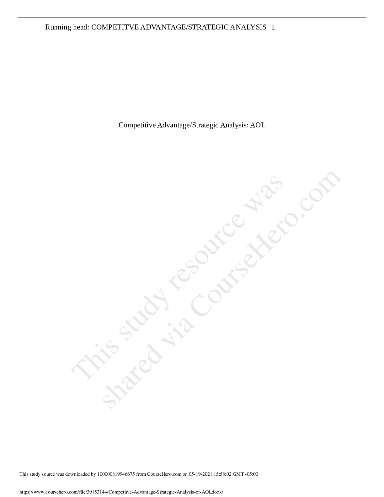 Business > Research Paper > COMPETITVE ADVANTAGE/STRATEGIC ANALYSIS 2