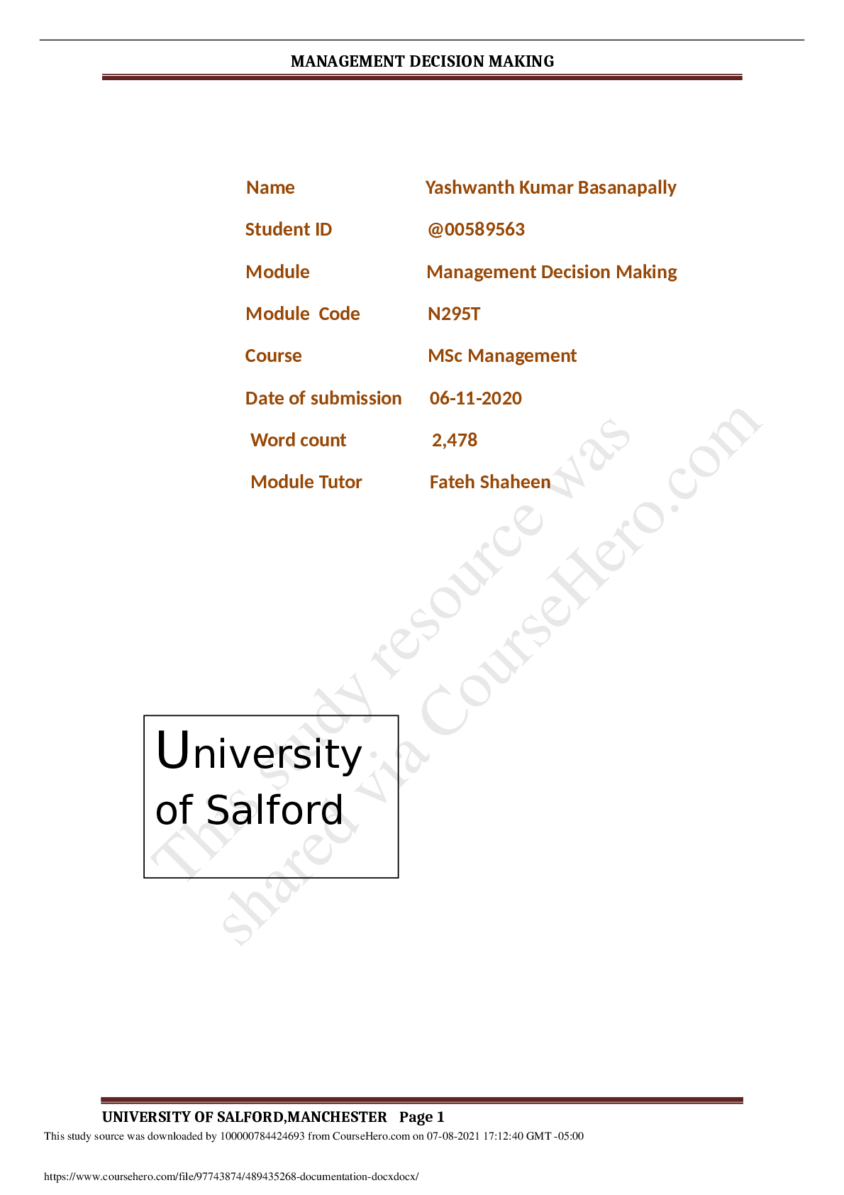 Marketing > Research Paper > business decision making assignment(Amirkulov Oriyon)