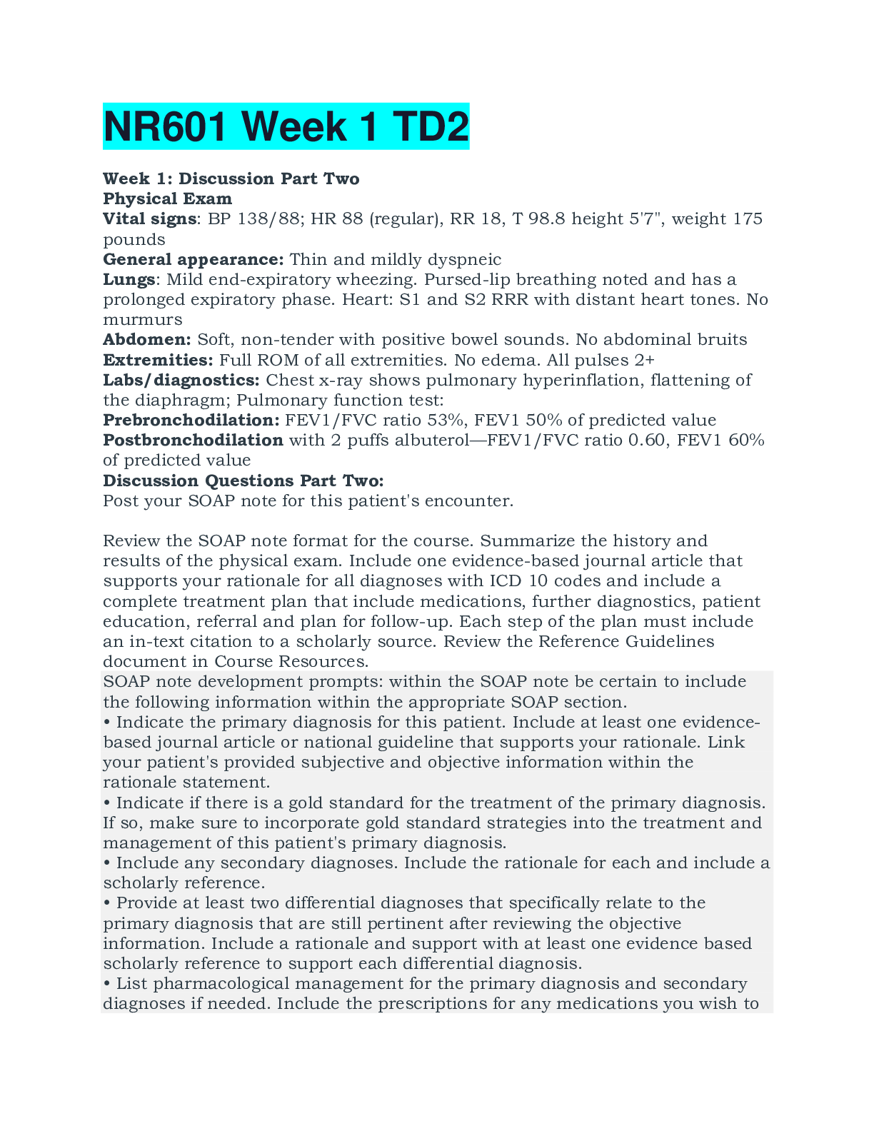 *NURSING > DISCUSSION POST > NR601 Week 1 TD2/ Week 1: Discussion Part Two(LATEST UPDATE)