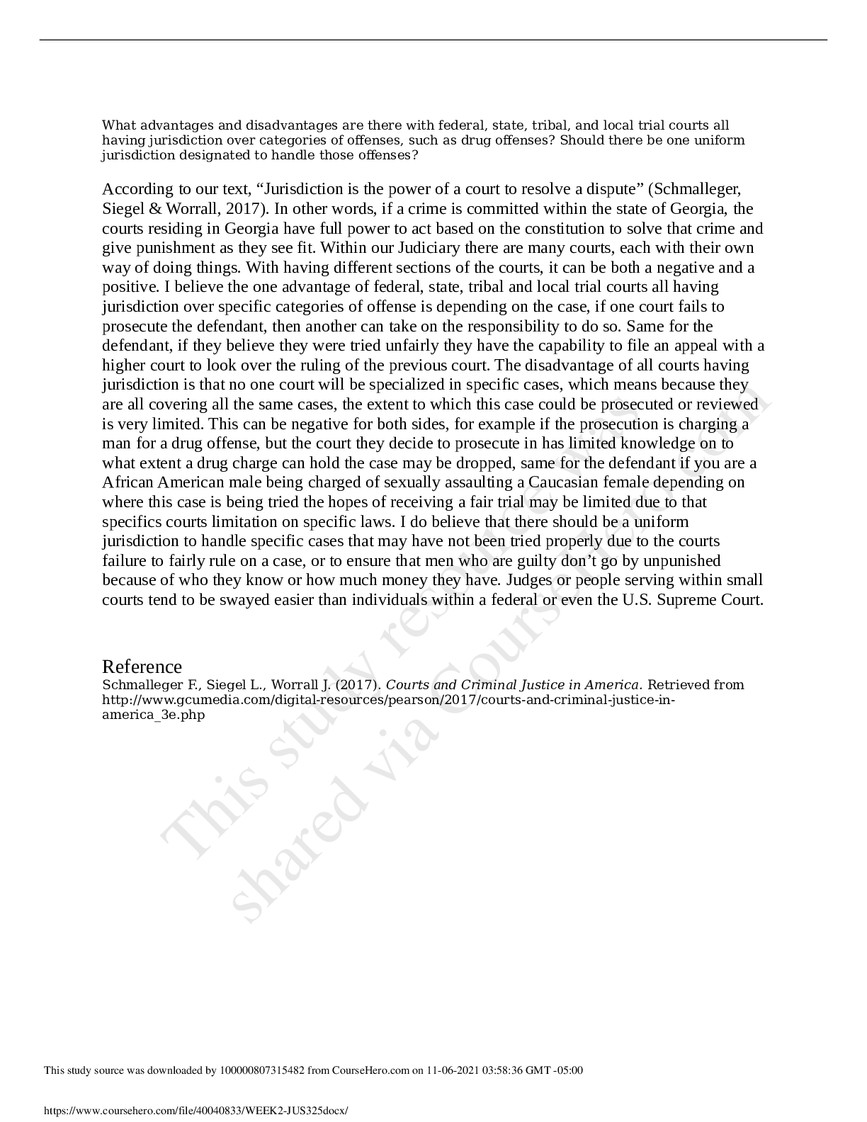 Law > DISCUSSION POST > JUS 325 Module 2 Discussion Question 1 2021