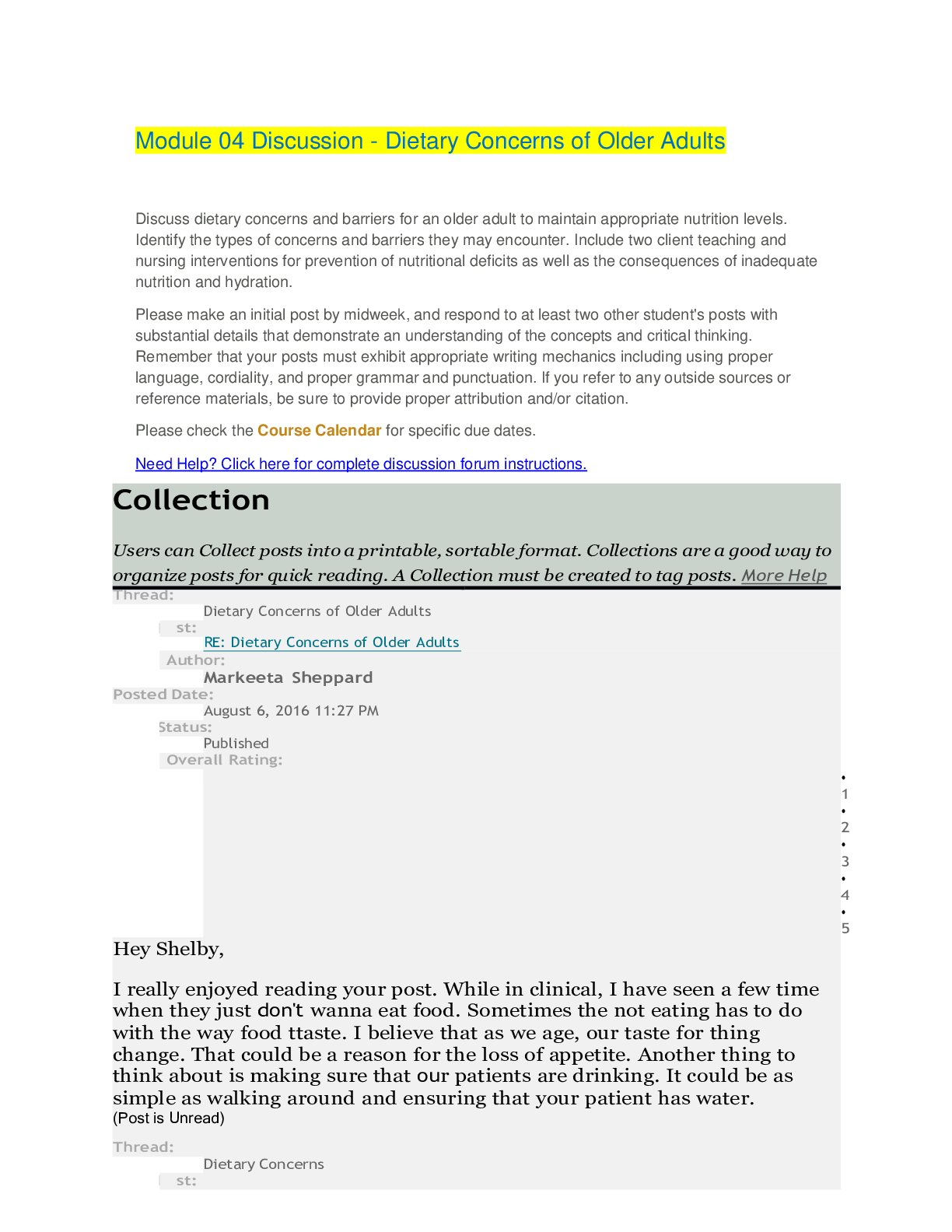 *NURSING > DISCUSSION POST > NUR 1172 | Module 04 Discussion - Dietary Concerns of Older Adults.docx | Rasmussen College