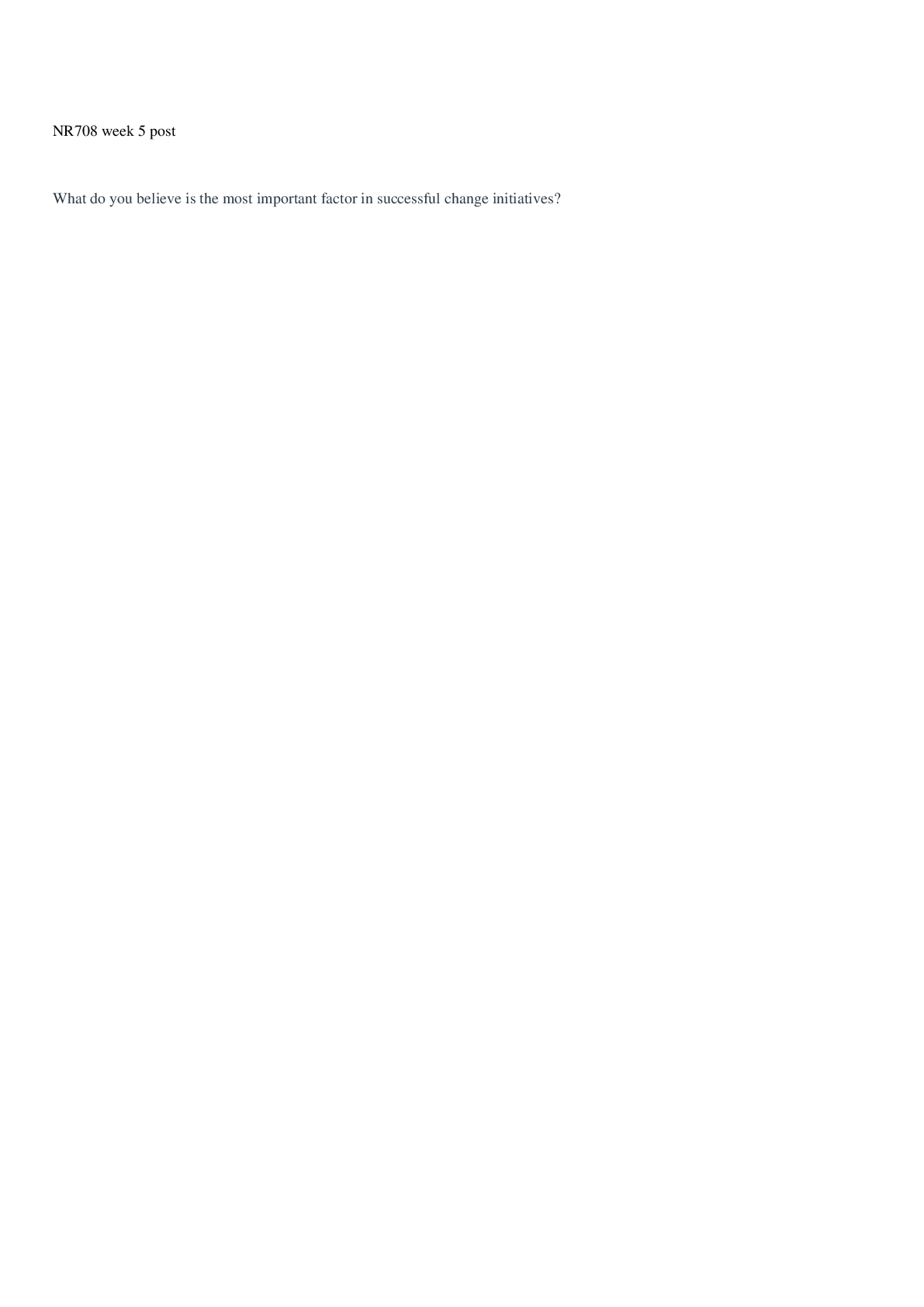 *NURSING > DISCUSSION POST > NR 708 Week 5 - Discussion Part 1; Changes in Healthcare Policy