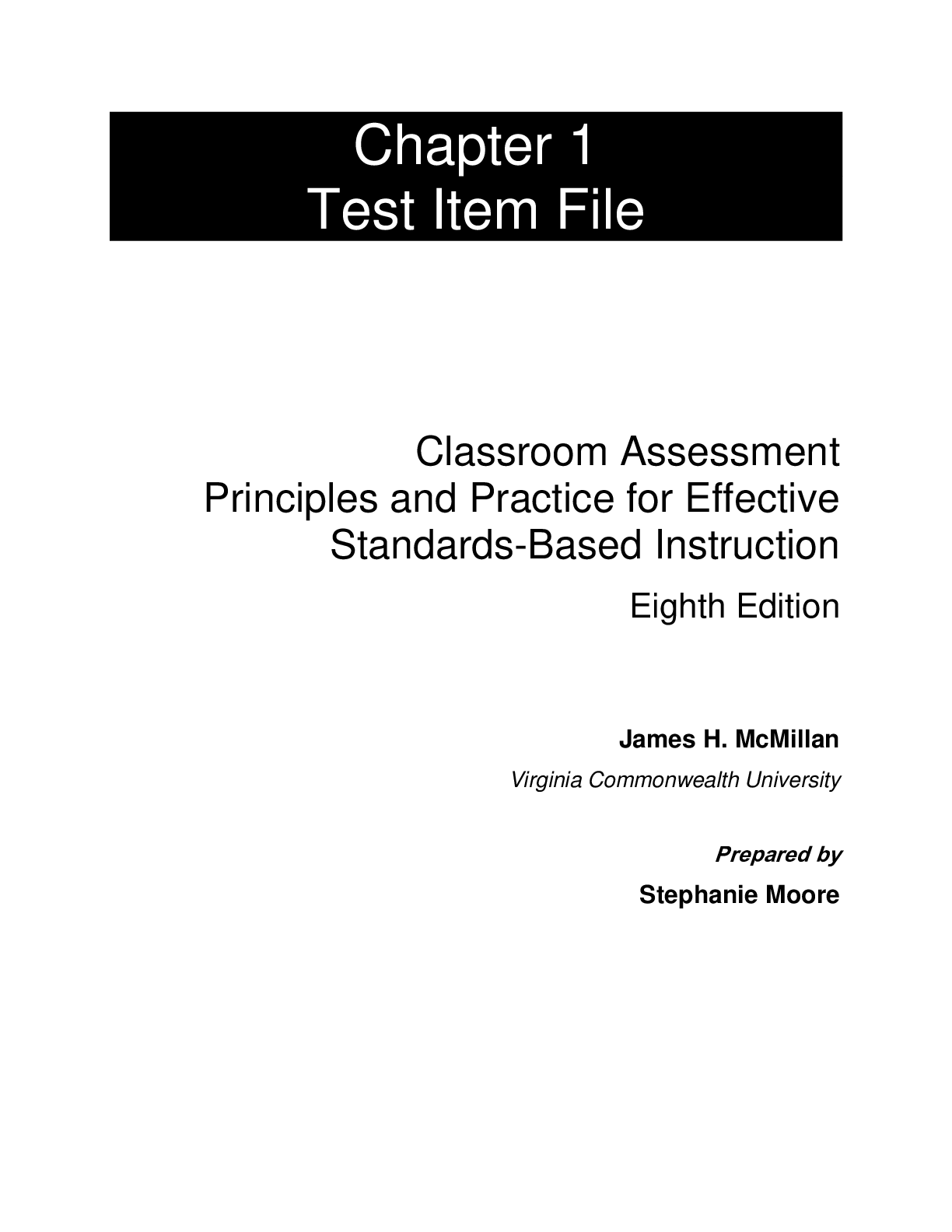 Business > TEST BANKS > Test Bank For Classroom Assessment Principles and Practice that Enhance Student Learning and Motivation, 8th Edition by James H. McMillan Chapter 1-15