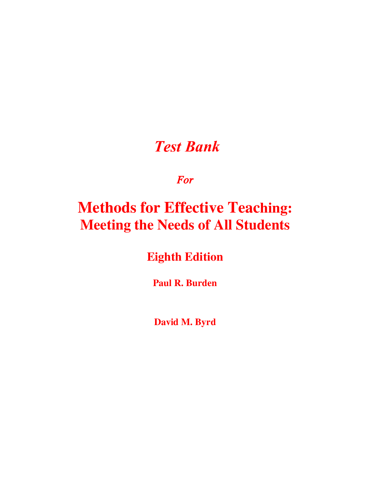 Business > TEST BANKS > Test Bank For Methods for Effective Teaching Meeting the Needs of All Students 8th Edition By Paul Burden, David Byrd