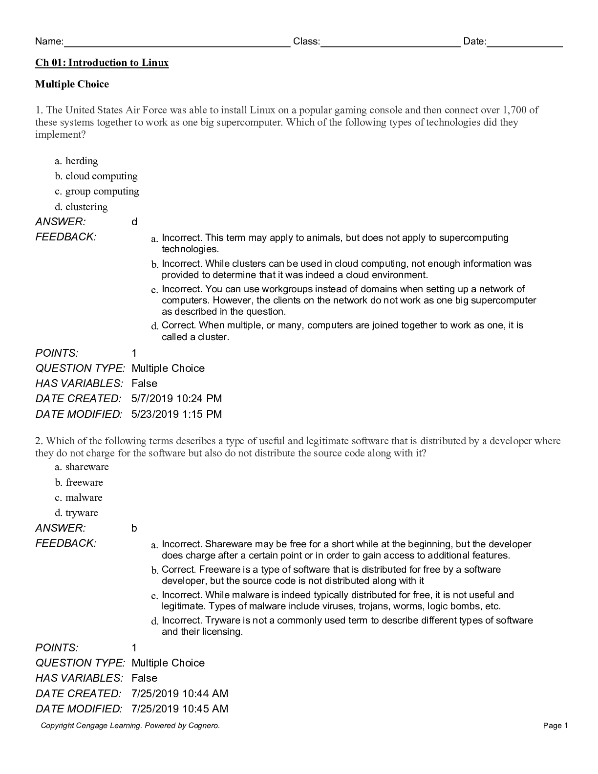 Computer Science > TEST BANKS > TEST BANK for Linux+ and LPIC-1 Guide to Linux Certification 6th Edition by Jason Eckert