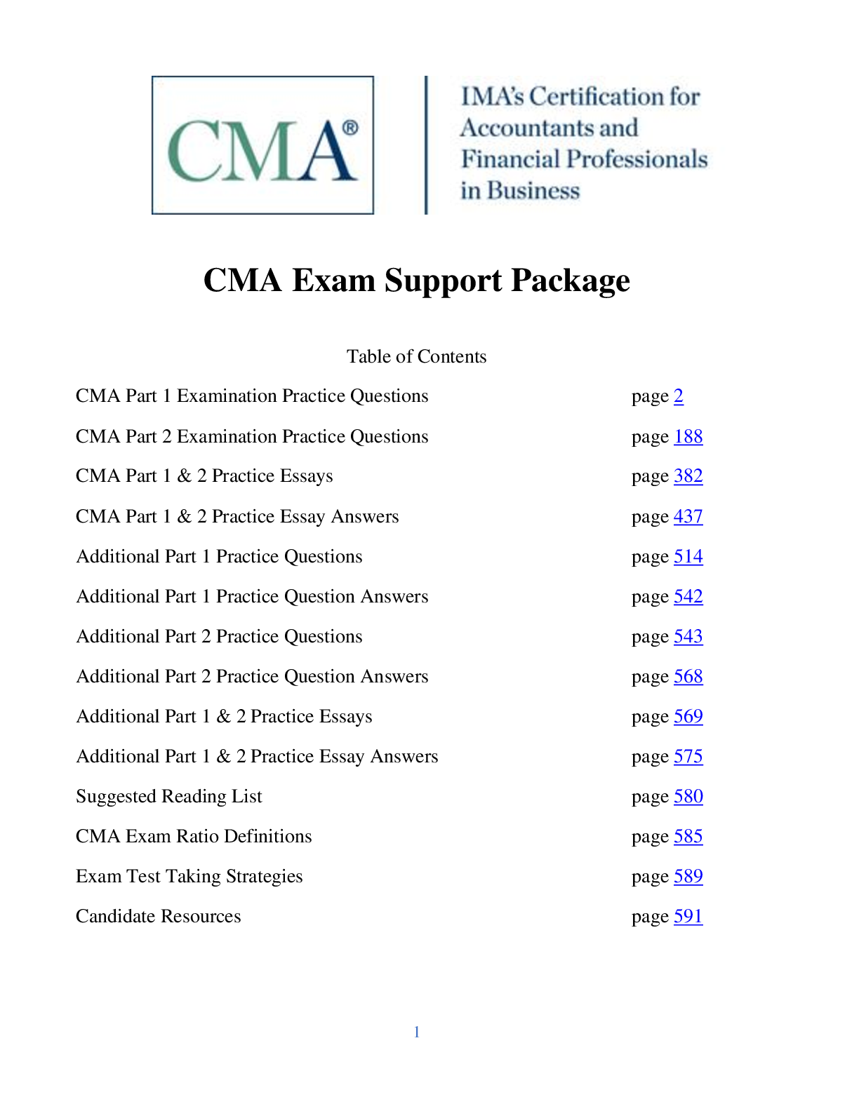 Financial Accounting > TEST BANKS > CMA Exam Support Package| IMa's Certification for Accountants and Financial Professionals in Business-