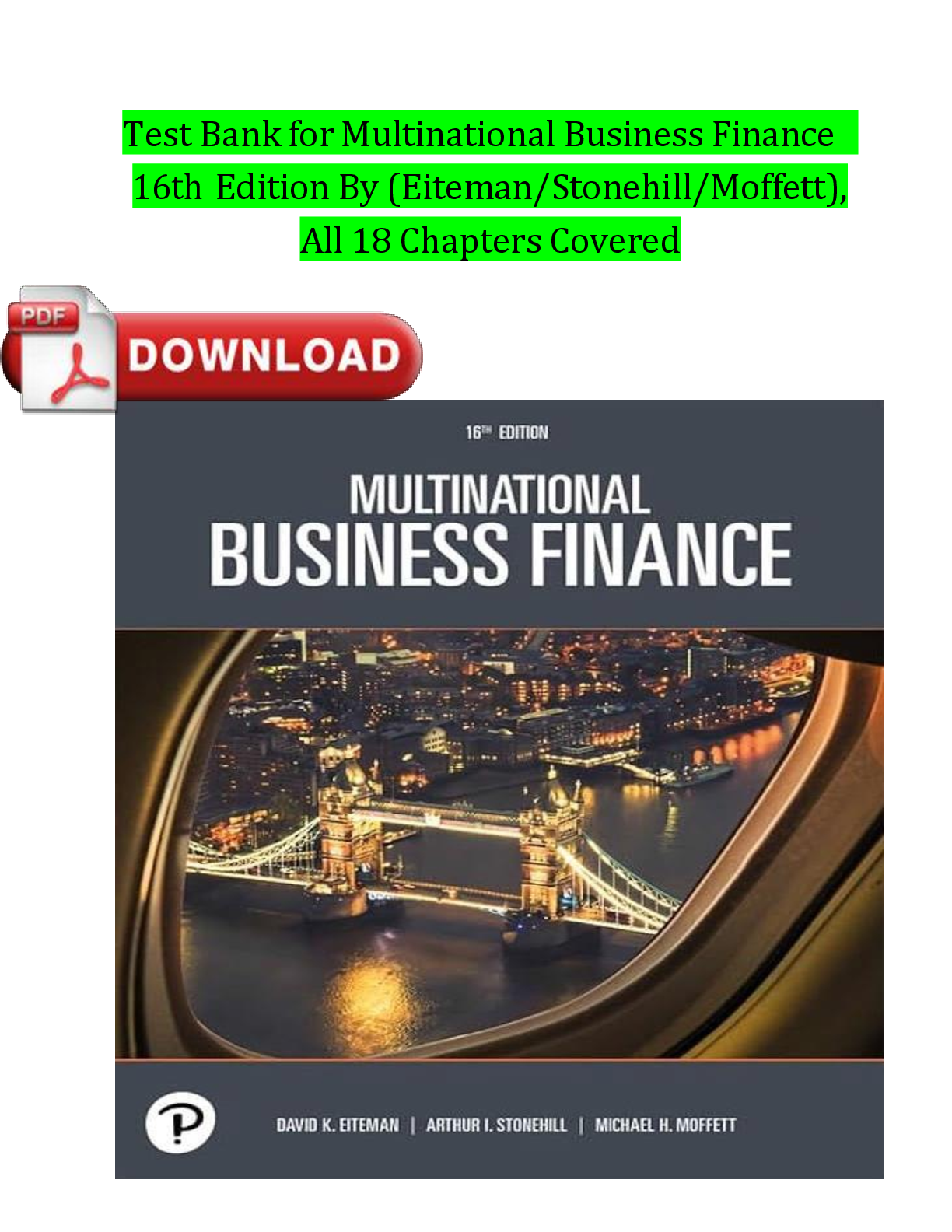 Business > TEST BANKS > Test Bank for Multinational Business Finance, 16th Edition by David K. Eiteman, Arthur I. Stonehill & Michael H. Moffett | ISBN: 9780137669561 | Chapters 1-18 | Global Finance, Foreign Exchange, Capital Budgeting, Political Risk | Downloadable PDF