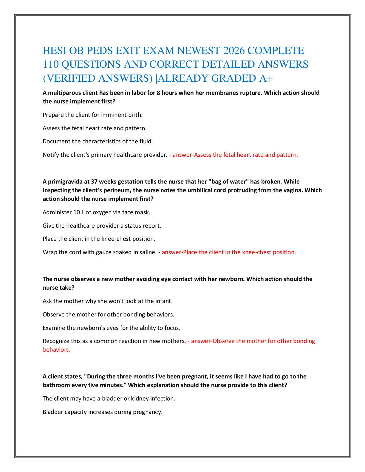 *NURSINGHESI  > HESI OB PEDS EXIT EXAM NEWEST 2026 COMPLETE 110 QUESTIONS AND CORRECT DETAILED ANSWERS (VERIFIED ANSWERS) |ALREADY GRADED A+