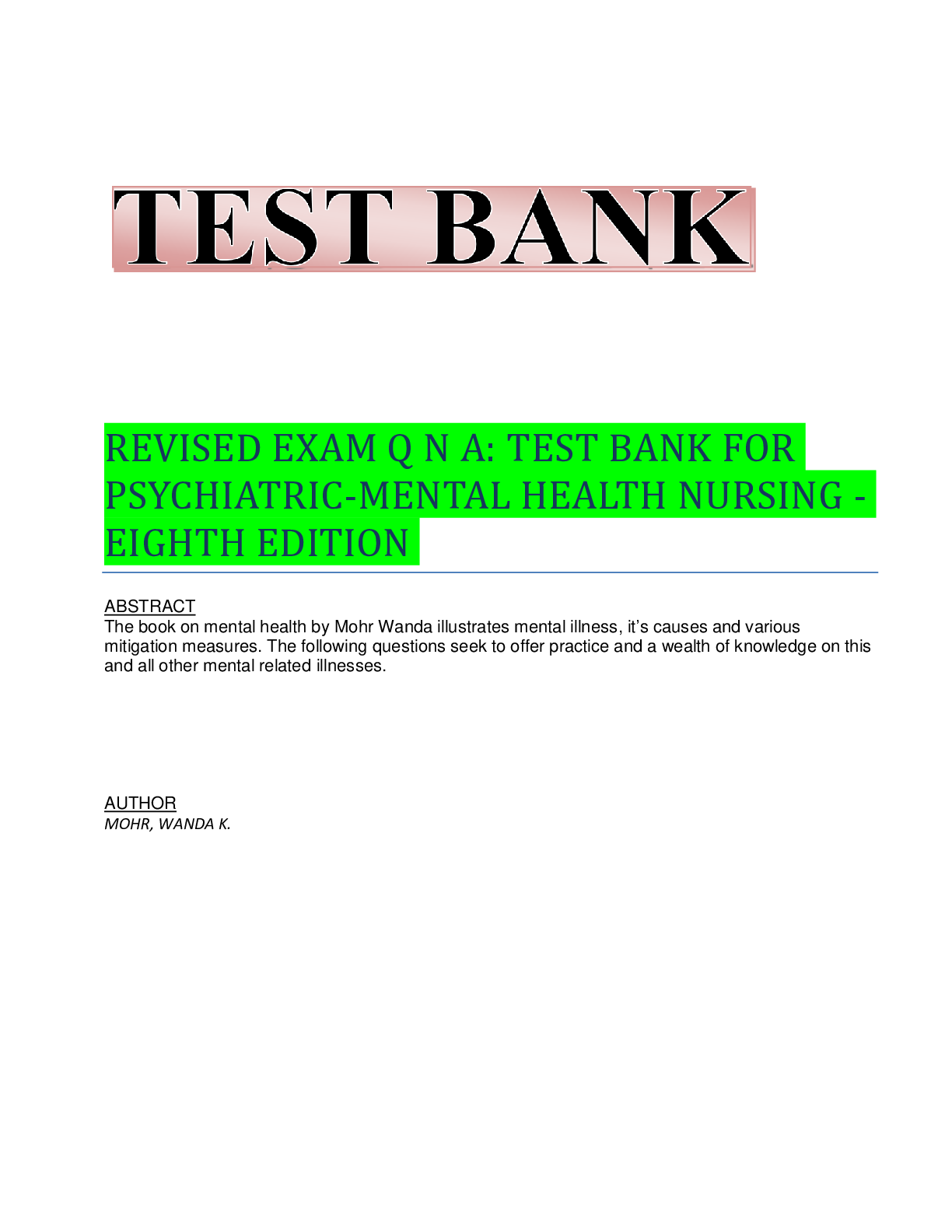 Health Care > QUESTION PAPER (QP) > Test bank for psychiatric mental health nursing 8th edition eighth edition by mohr wanda k (1)