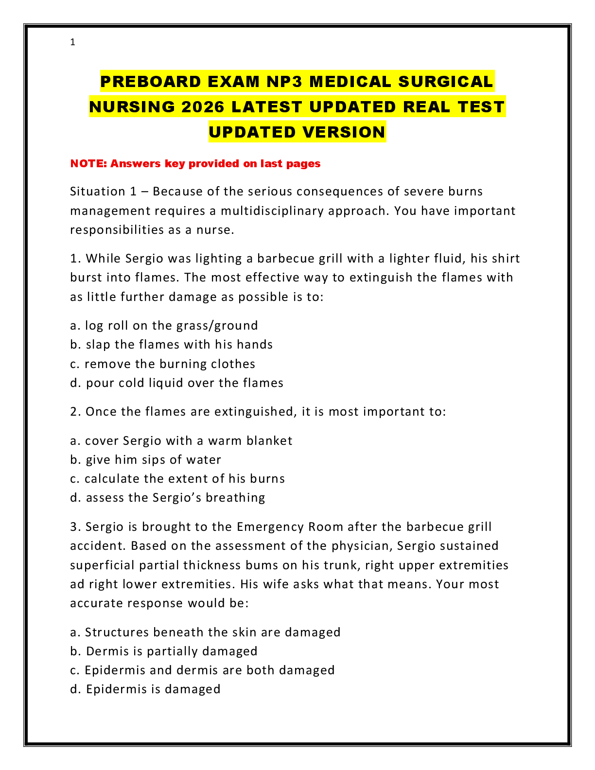 Medical Surgical Nursing > MED-SURG EXAM > PREBOARD EXAM NP3 MEDICAL SURGICAL NURSING 2026 LATEST UPDATED REAL TEST UPDATED VERSION