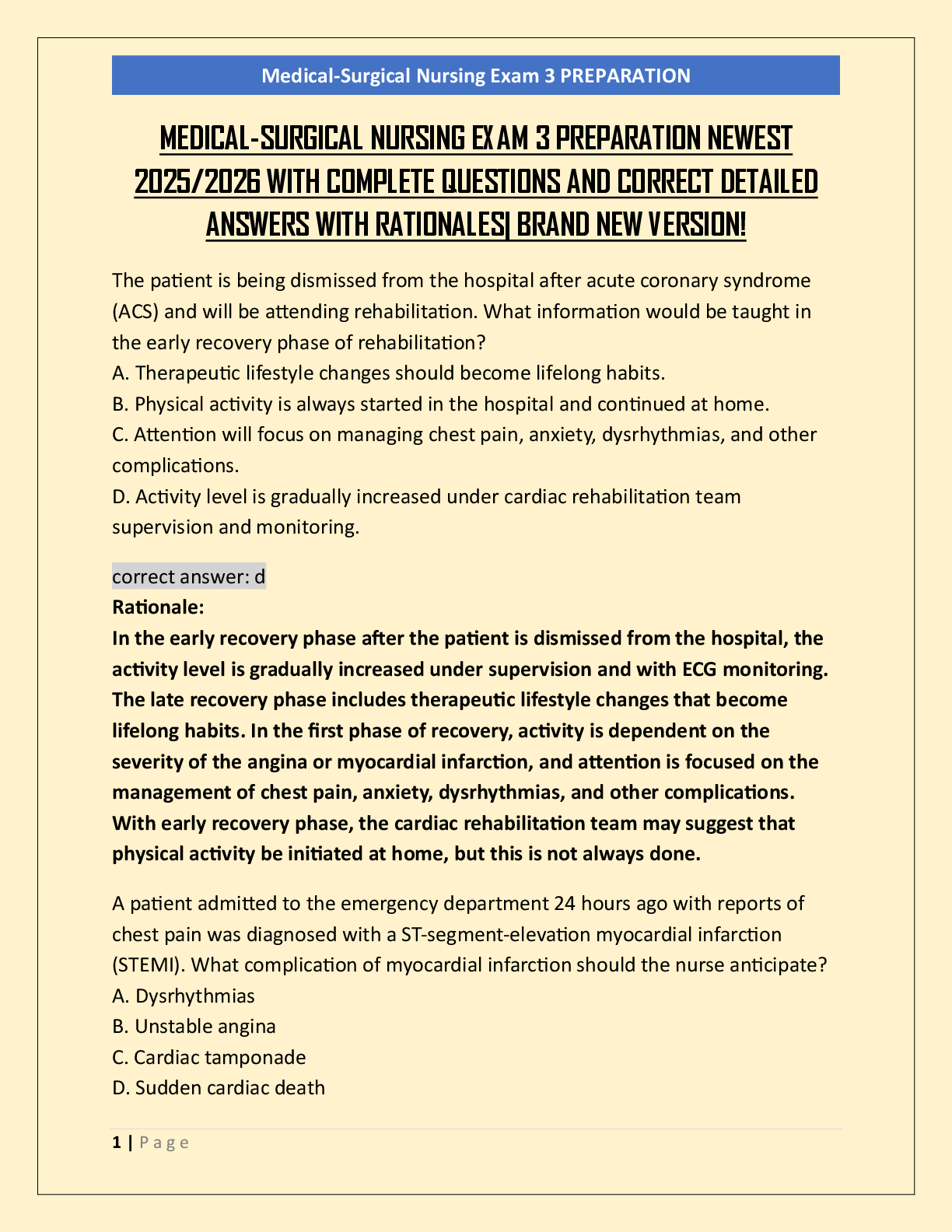 *NURSING > MED-SURG EXAM > MEDICAL-SURGICAL NURSING EXAM 3 PREPARATION NEWEST 2025/2026 WITH COMPLETE QUESTIONS AND CORRECT DETAILED ANSWERS WITH RATIONALES| BRAND NEW VERSION!