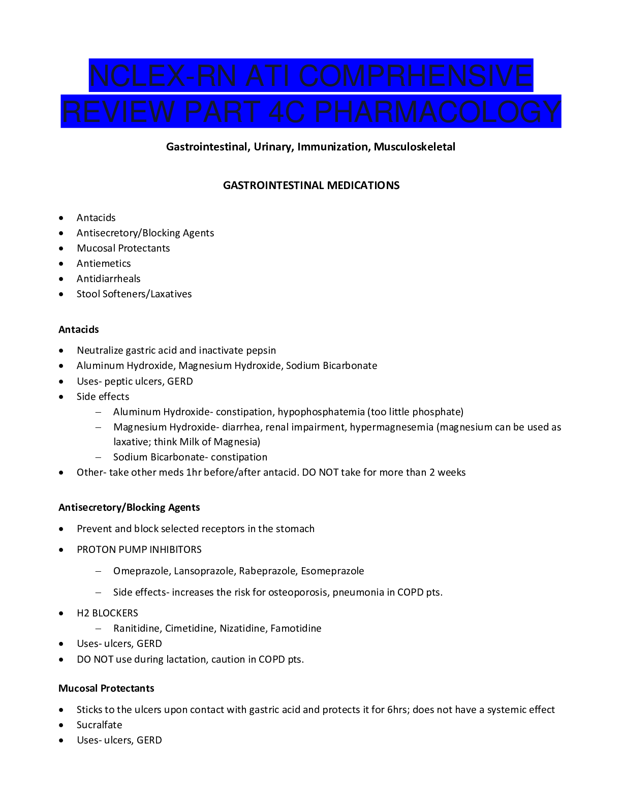 *NURSING > NCLEX > NCLEX RN ATI COMPRHENSIVE REVIEW PART 4C PHARMACOLOGY-LATEST 2021.pdf