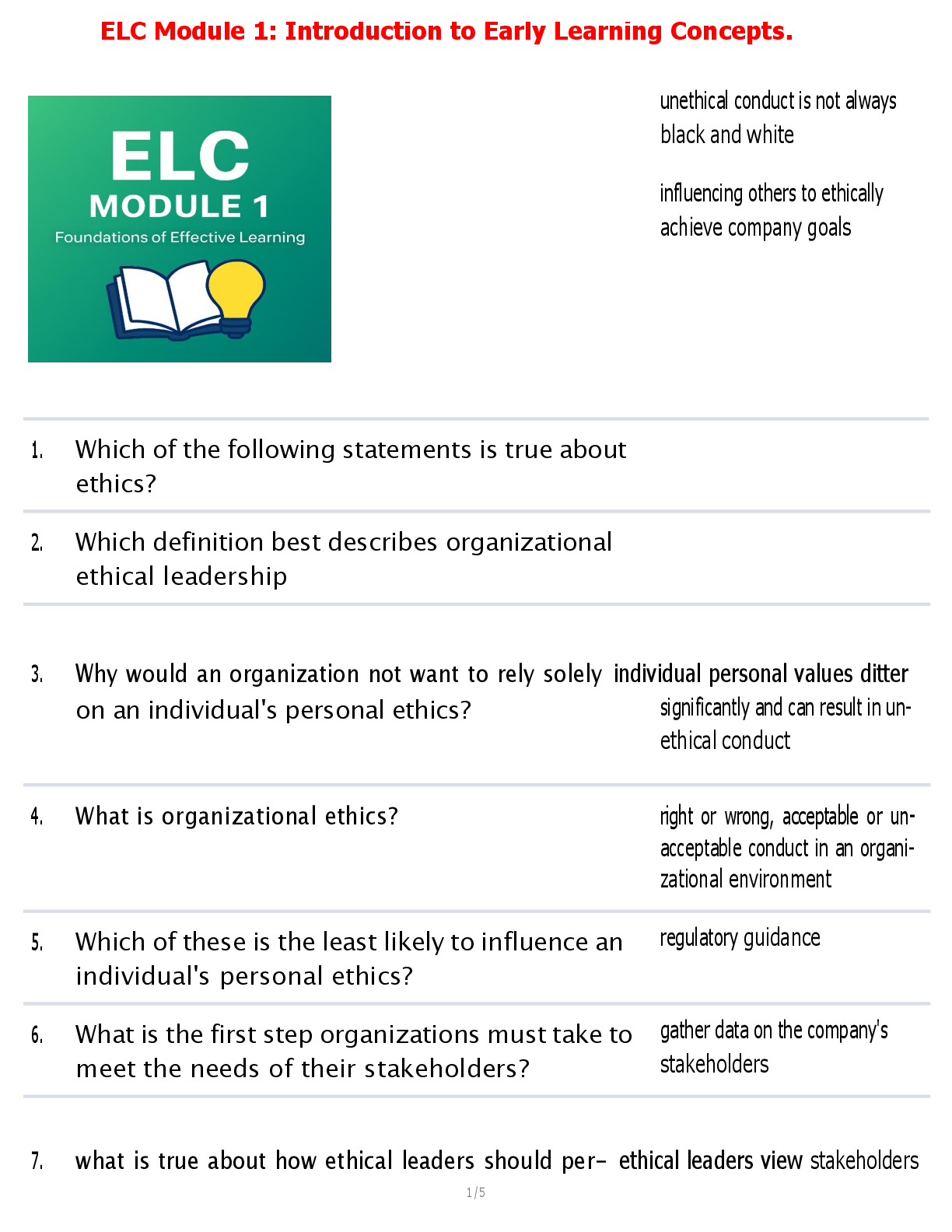 *NURSING > QUESTIONS & ANSWERS > ELC Module 1: Introduction to Early Learning Concepts
