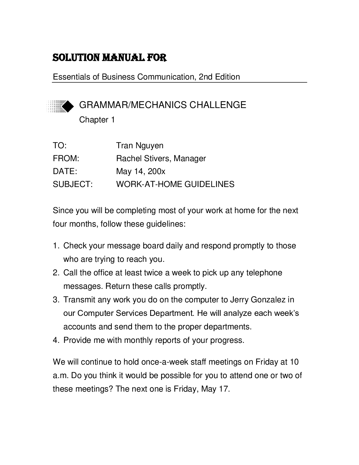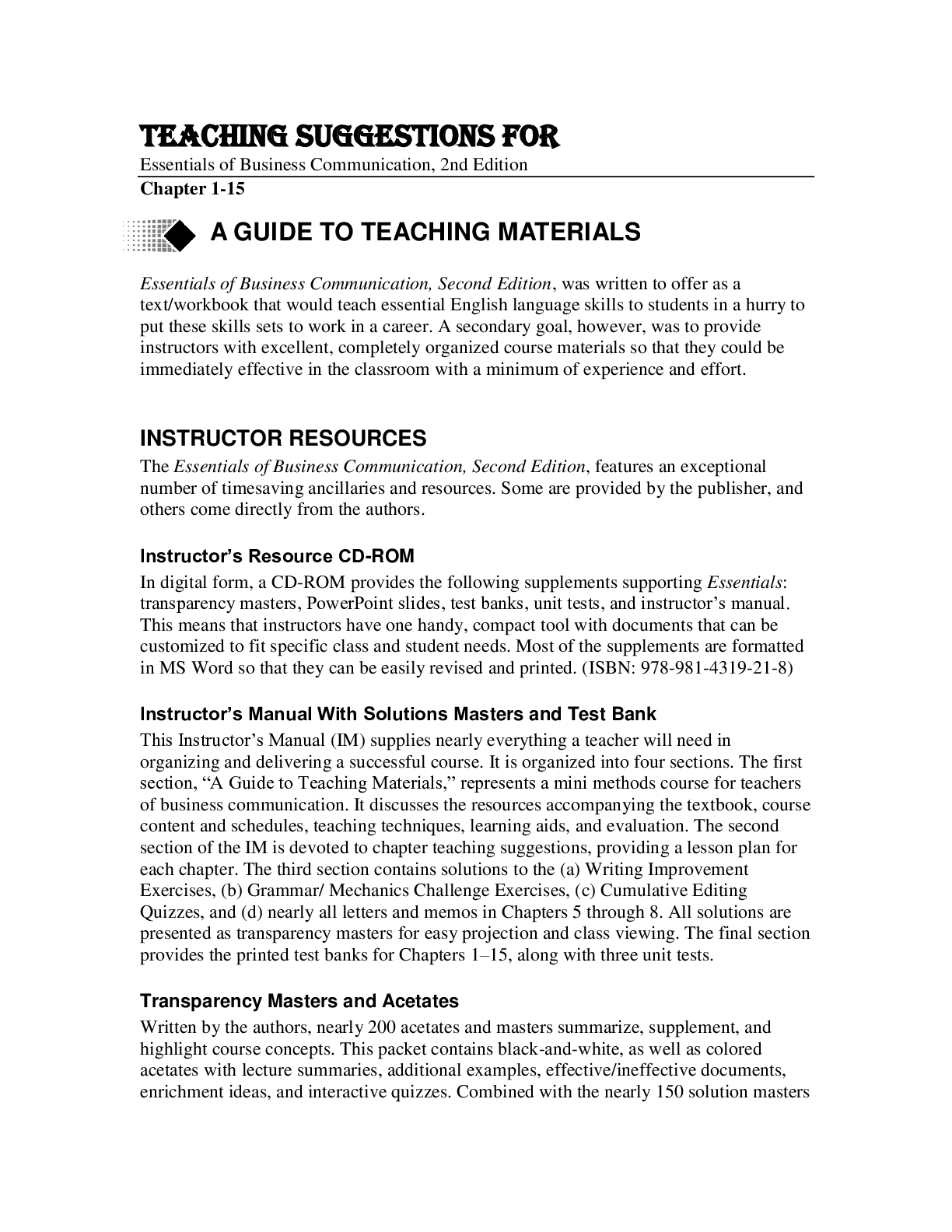 Business > SOLUTIONS MANUAL > Teaching Suggestions For Essentials of Business Communication, 2nd Edition