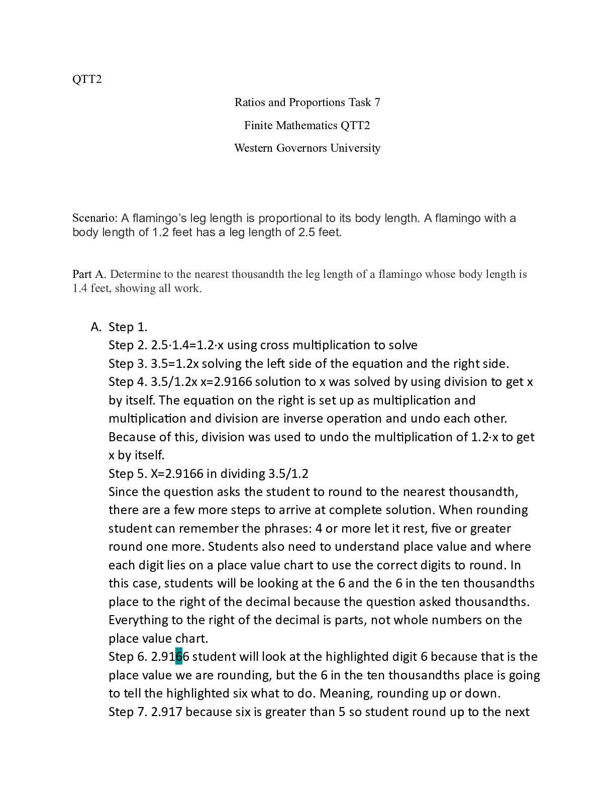 Business > CASE STUDY > Task7.QTT2.WGU.docx QTT2 Ratios and Proportions Task 7 Finite Mathematics QTT2 Western