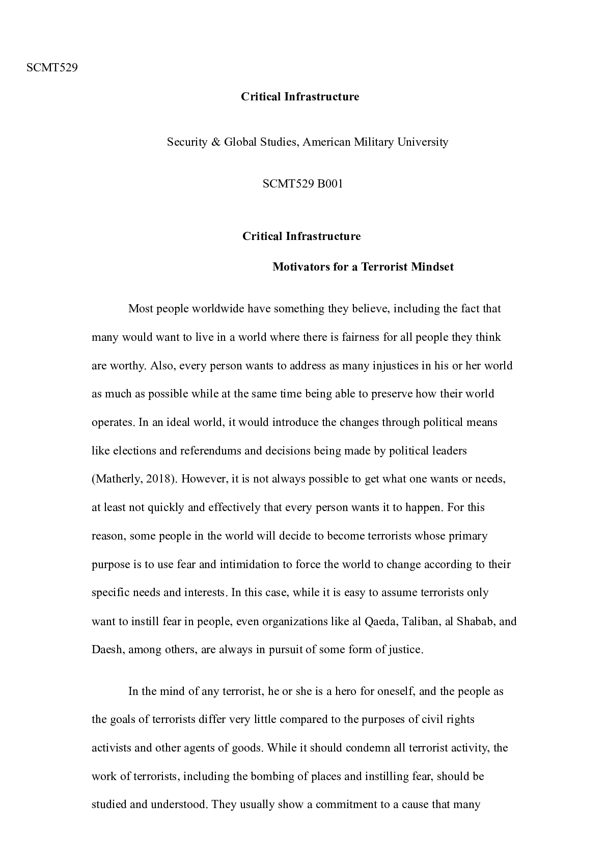 Business > CASE STUDY > SCMT529Essay.docx SCMT529 Critical Infrastructure Security & Global Studies, American M