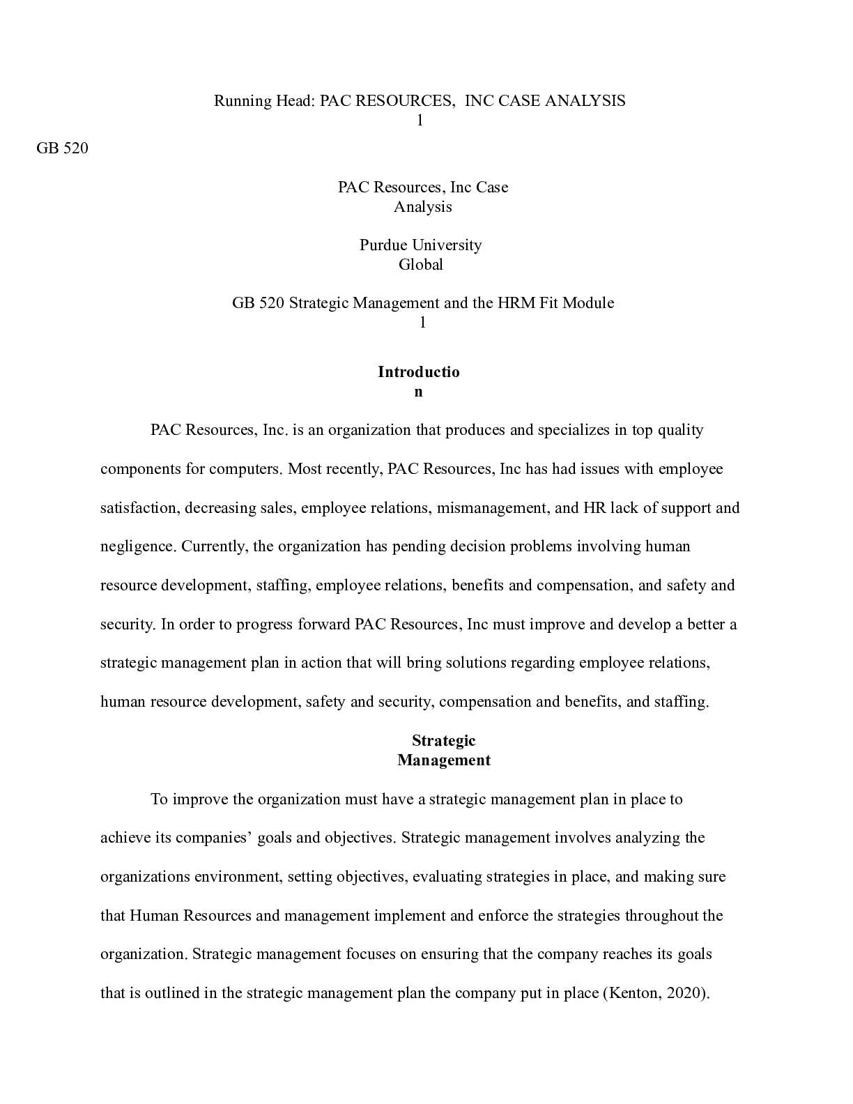 Business > CASE STUDY > GB520 Module 1 CA.docx(1) Running Head: PAC RESOURCES, INC CASE ANALYSIS