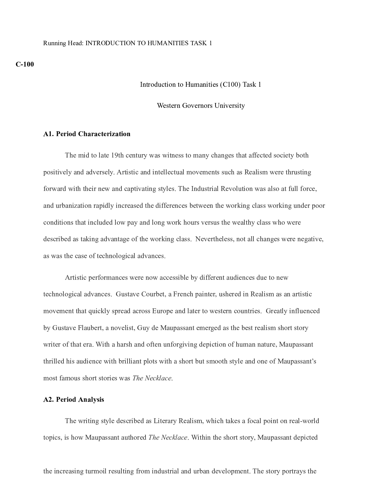Business > CASE STUDY > C100_Task_1.docx Running Head: INTRODUCTION TO HUMANITIES TASK 1 C-100 Introduction to