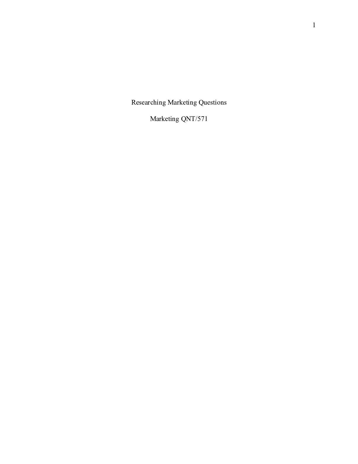 Business > CASE STUDY > Researching Marketing Questions.doc Researching Marketing Questions Marketing QNT/571