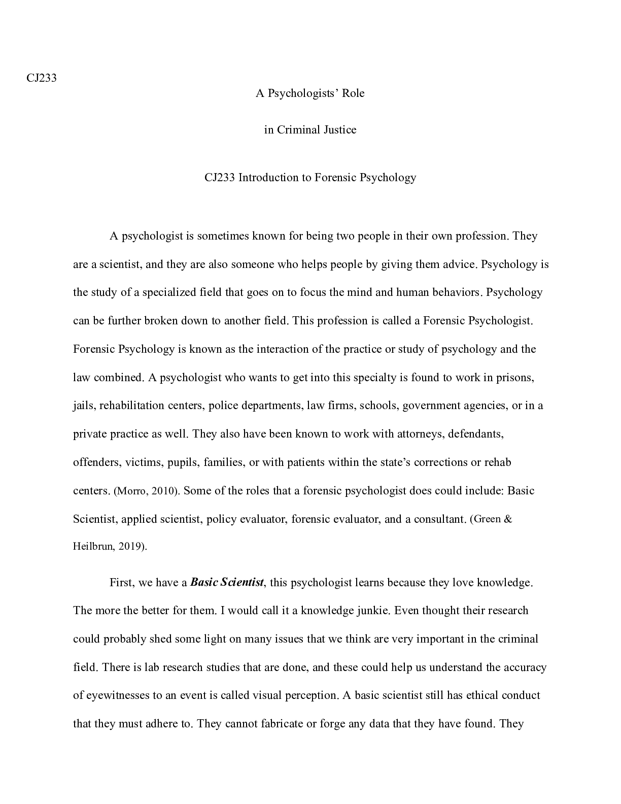 BusinessCASE STUDY  > CJ233 Intro to Forensic PSychology Unit2 Assignment1.docx(1) CJ233 A Psychologists Rol