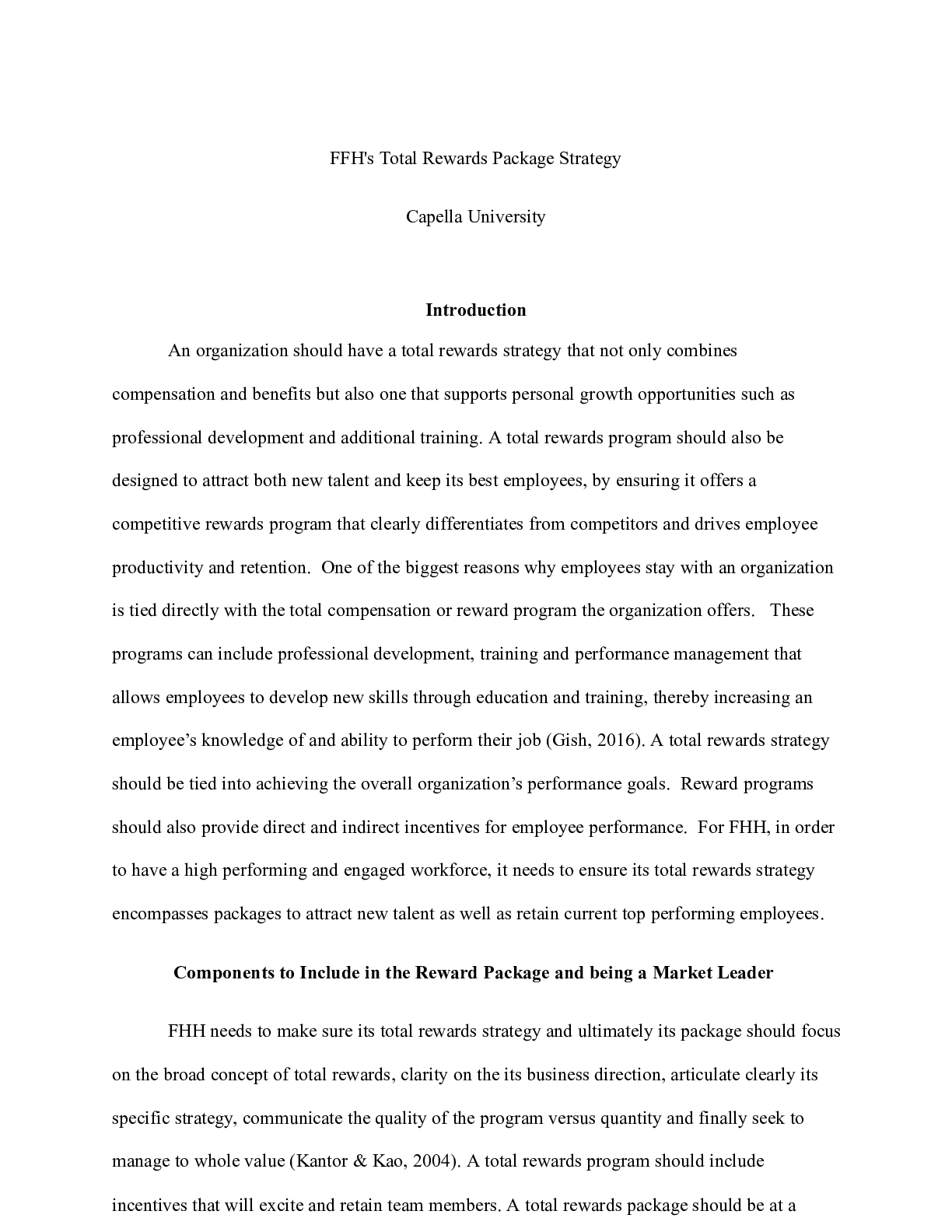 BusinessCASE STUDY  > Unit 7 Assignment.docx FFH's Total Rewards Package Strategy Capella University Intro