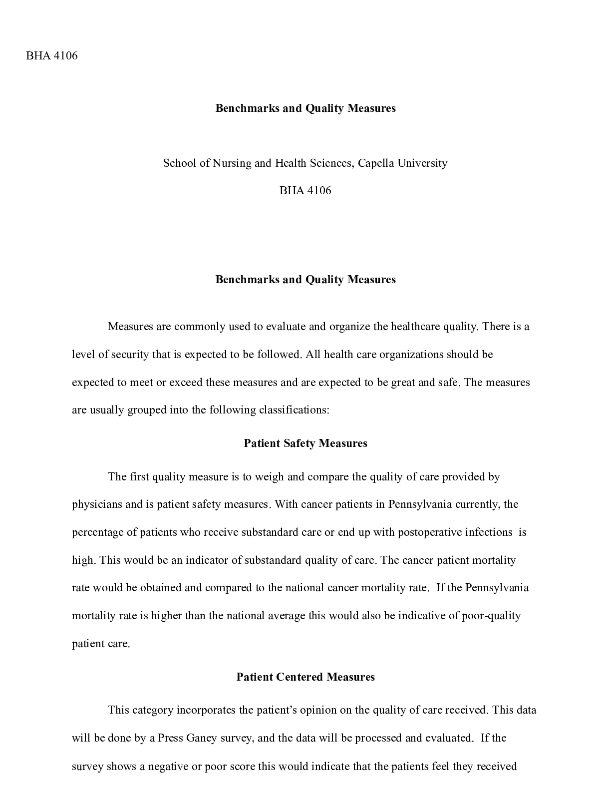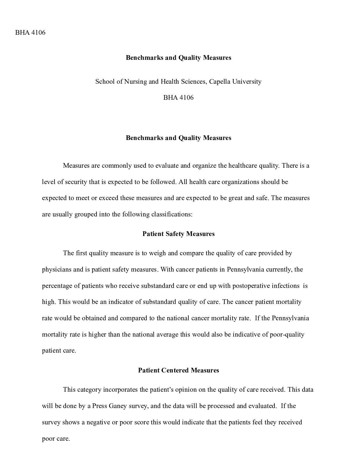 Business > CASE STUDY > Benchmarks part 2.docx BHA 4106 Benchmarks and Quality Measures School of Nursing and H