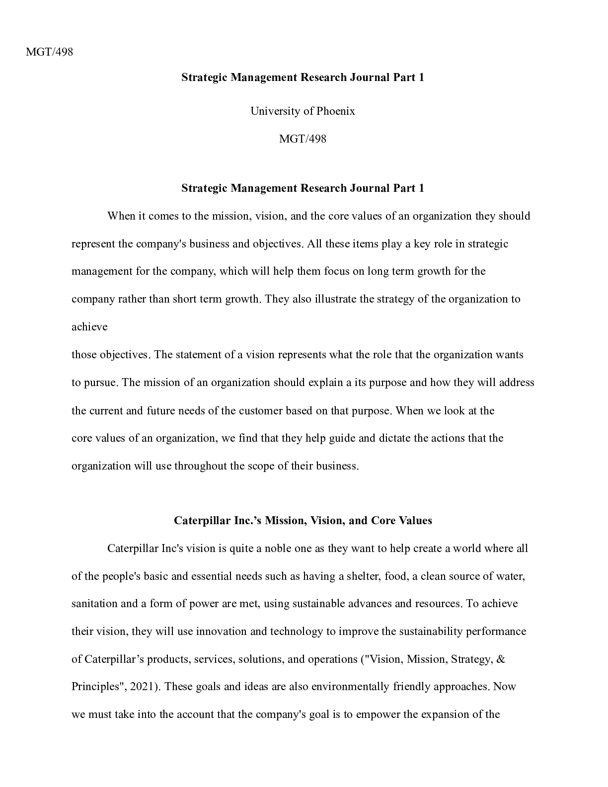 Business > CASE STUDY > Strategic Management Journal Part 1.docx MGT/498 Strategic Management Research Journal P