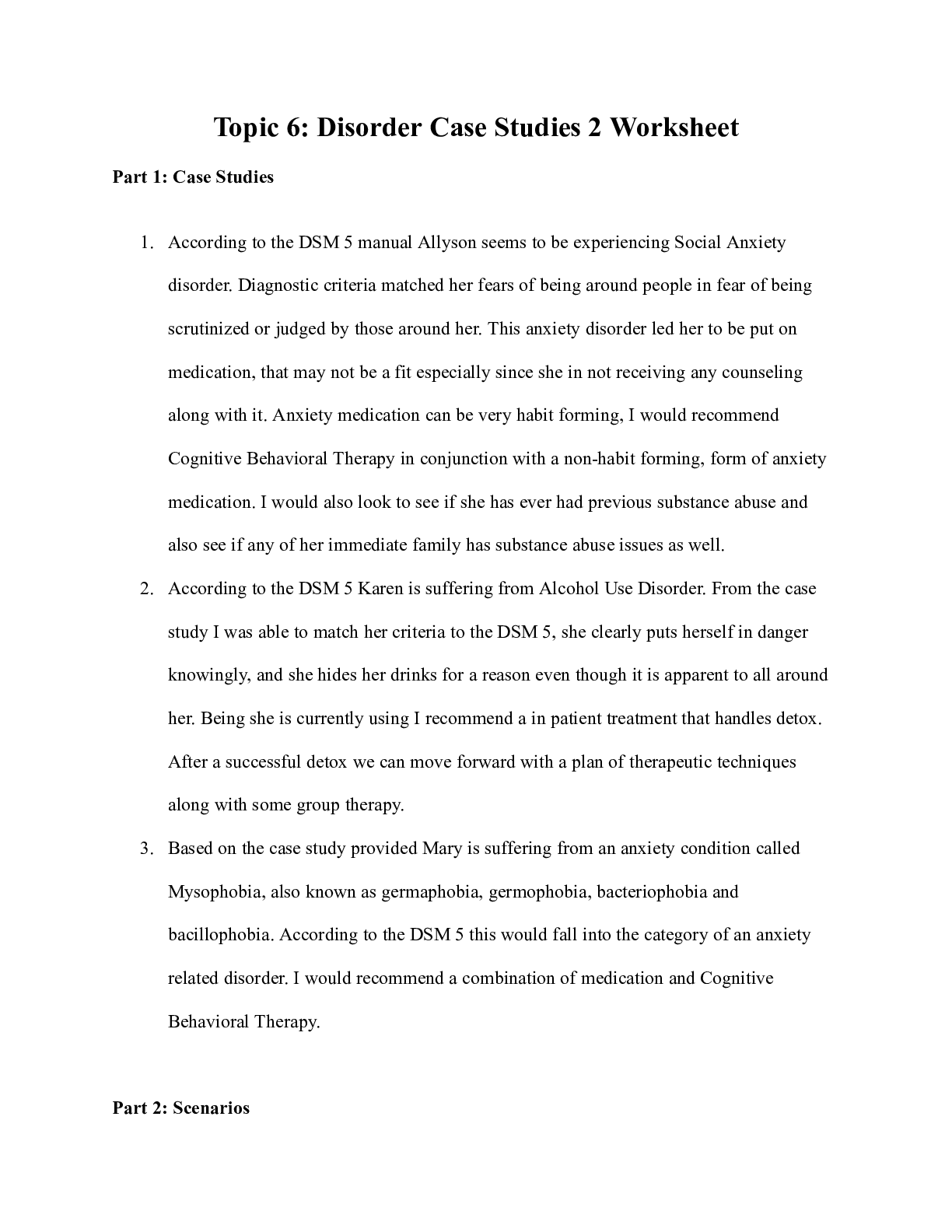 Business > CASE STUDY > Topic 6 PCN 529.docx Topic 6: Disorder Case Studies 2 Worksheet Part 1: Case Studies 1.