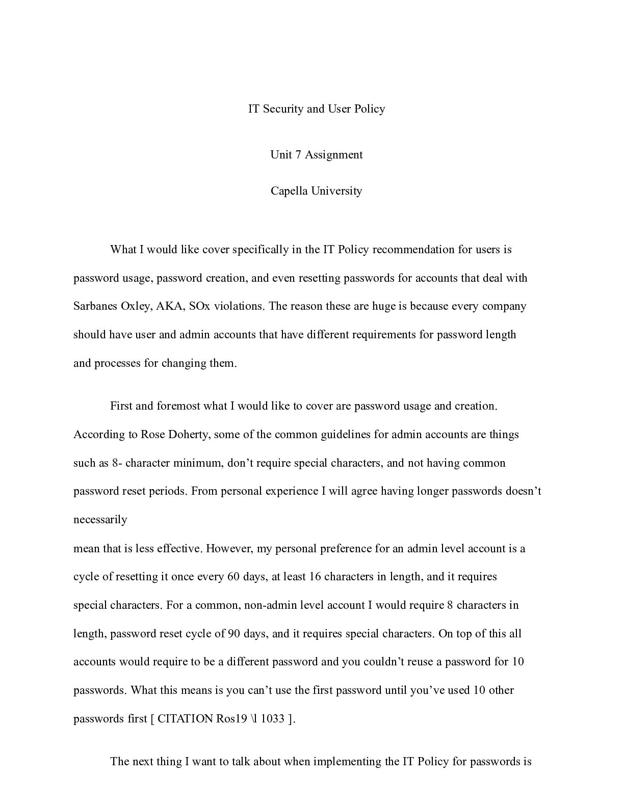 Business > CASE STUDY > Week 7 Assignment 1.docx IT Security and User Policy Unit 7 Assignment Capella Univers