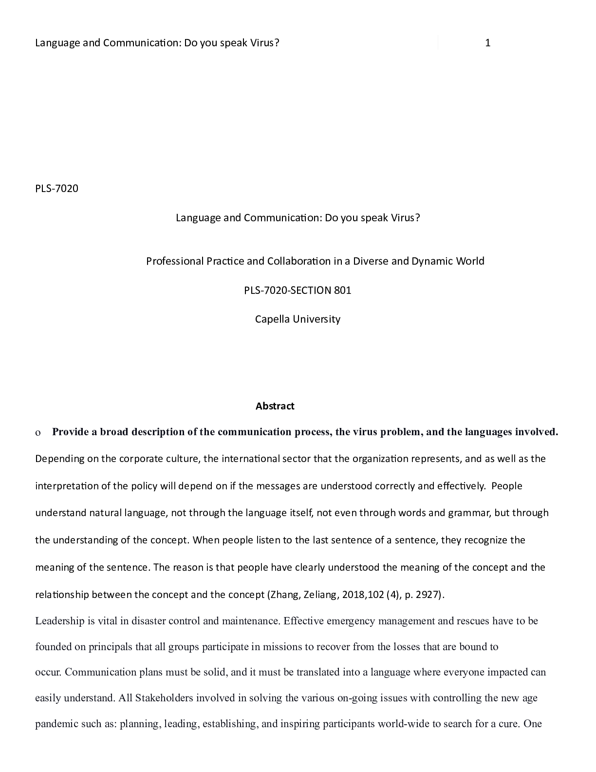 Business > CASE STUDY > Week 8 Assignment APA Paper FINAL.docx PLS-7020 Language and Communication: Do you speak