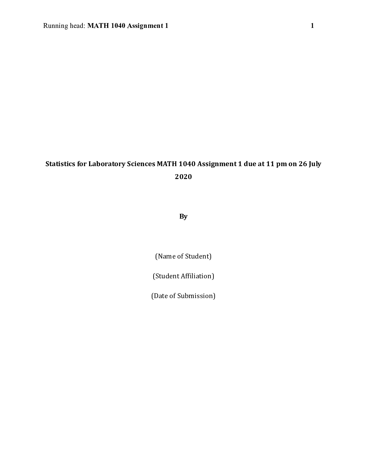 Business > CASE STUDY > Minitab_Assignment.docx Statistics for Laboratory Sciences MATH 1040 Assignment 1 due a