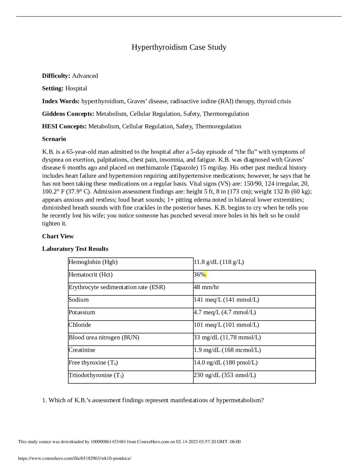 *NURSING > CASE STUDY > NURSING BS 365/ Wk10 post.docx - Hyperthyroidism Case Study/ 100% VERIFIED