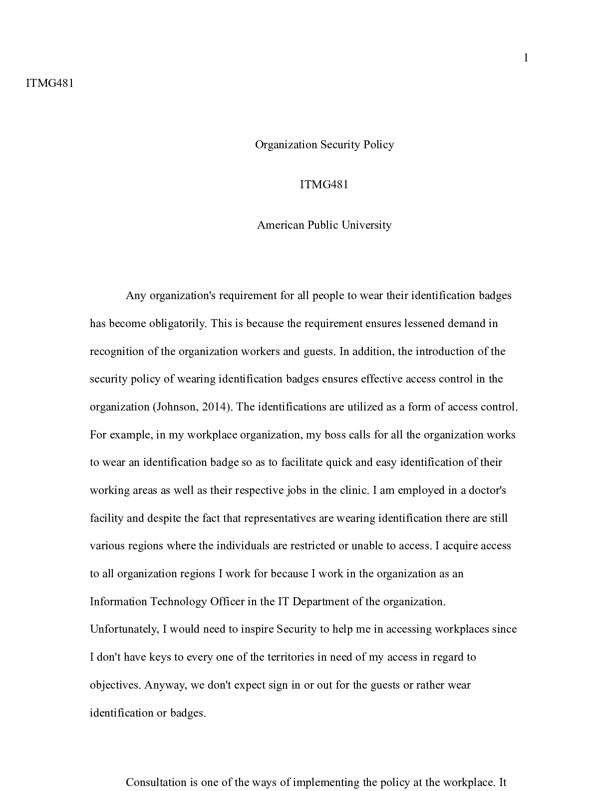 Business > CASE STUDY > Assignment 1 ISSC 481.doc 1 ITMG481 Organization Security Policy ITMG481 American Pub