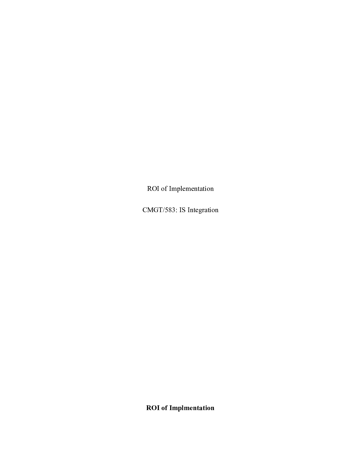 Business > CASE STUDY > CMGT583_Week6_ROIOfImplementation.docx ROI of Implementation CMGT/583: IS Integration