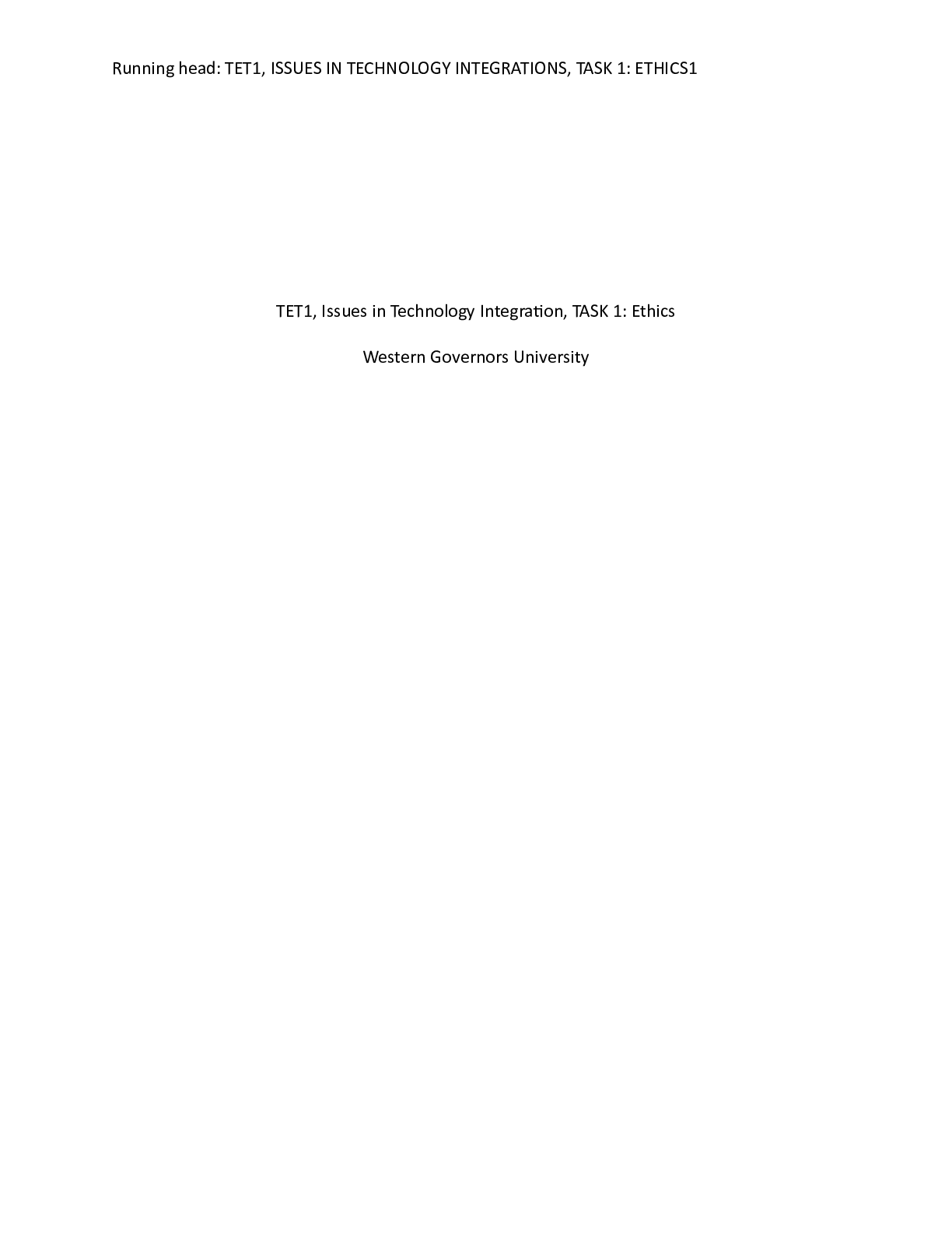 Business > CASE STUDY > TET1_Task_1_Essay.docx TET1, Issues in Technology Integration, TASK 1: Ethics Western Go