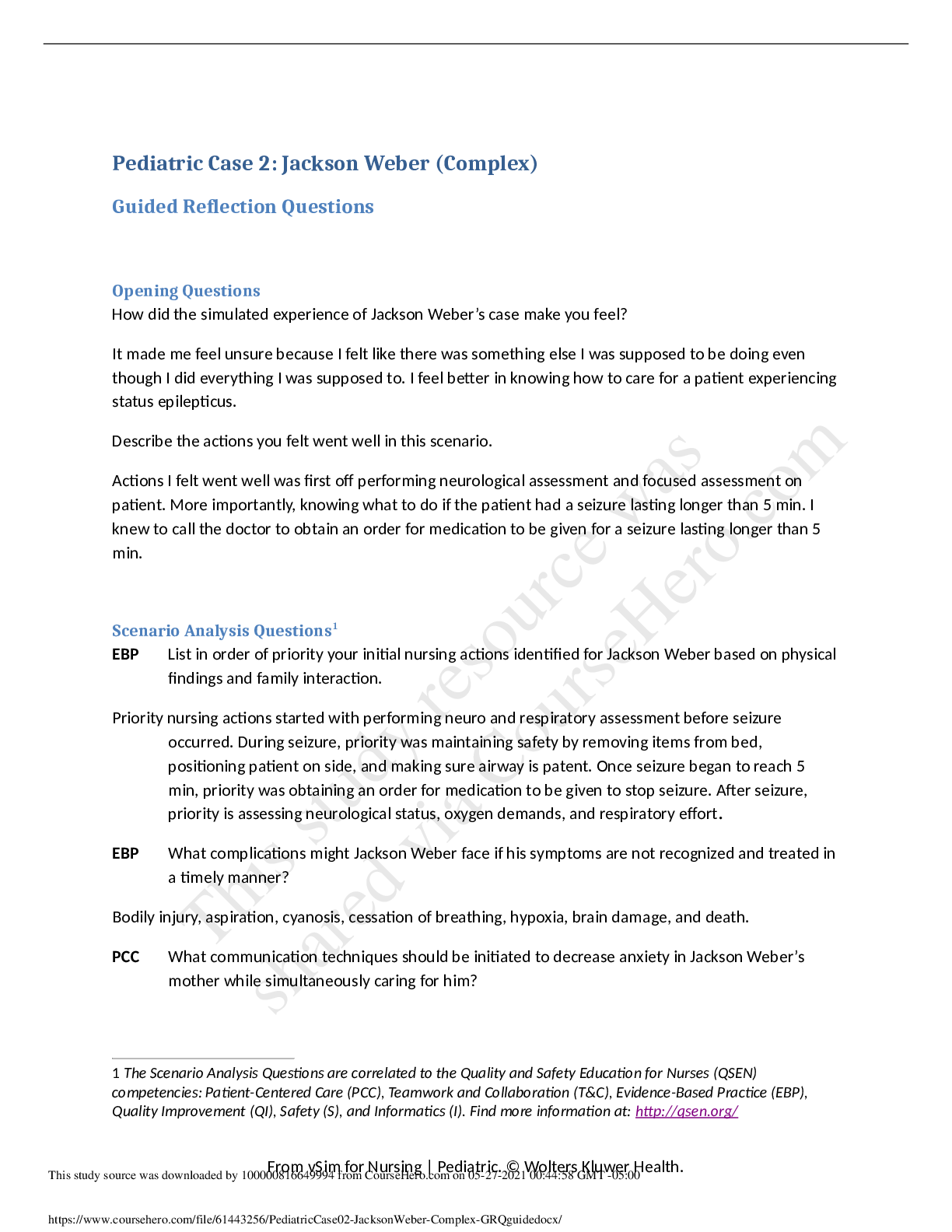 *NURSING > vSim For Nursing > Jackson Weber (Complex) Documentation Assessment | Vsim For Nursing Pediatric Case 2