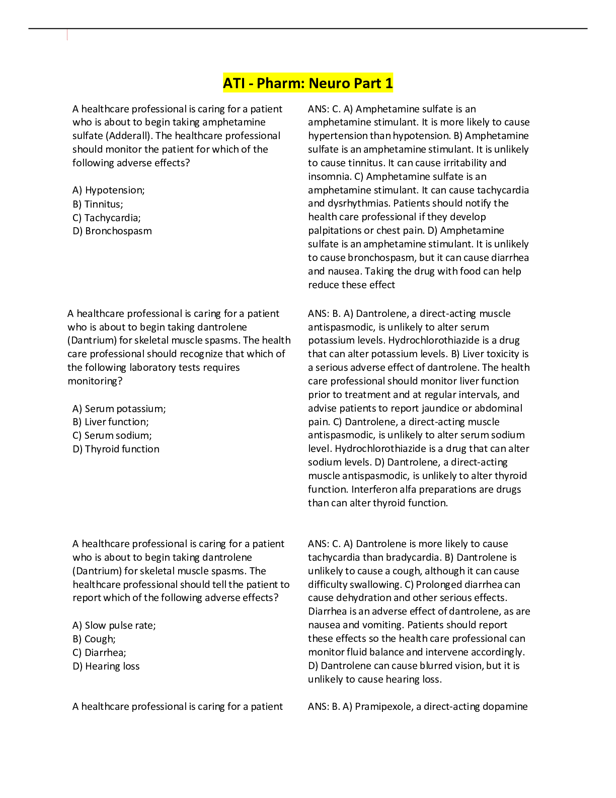 Pharmacology > Other Study Resources. > Pharmacology ATI Final Review (Part 2) Graded A