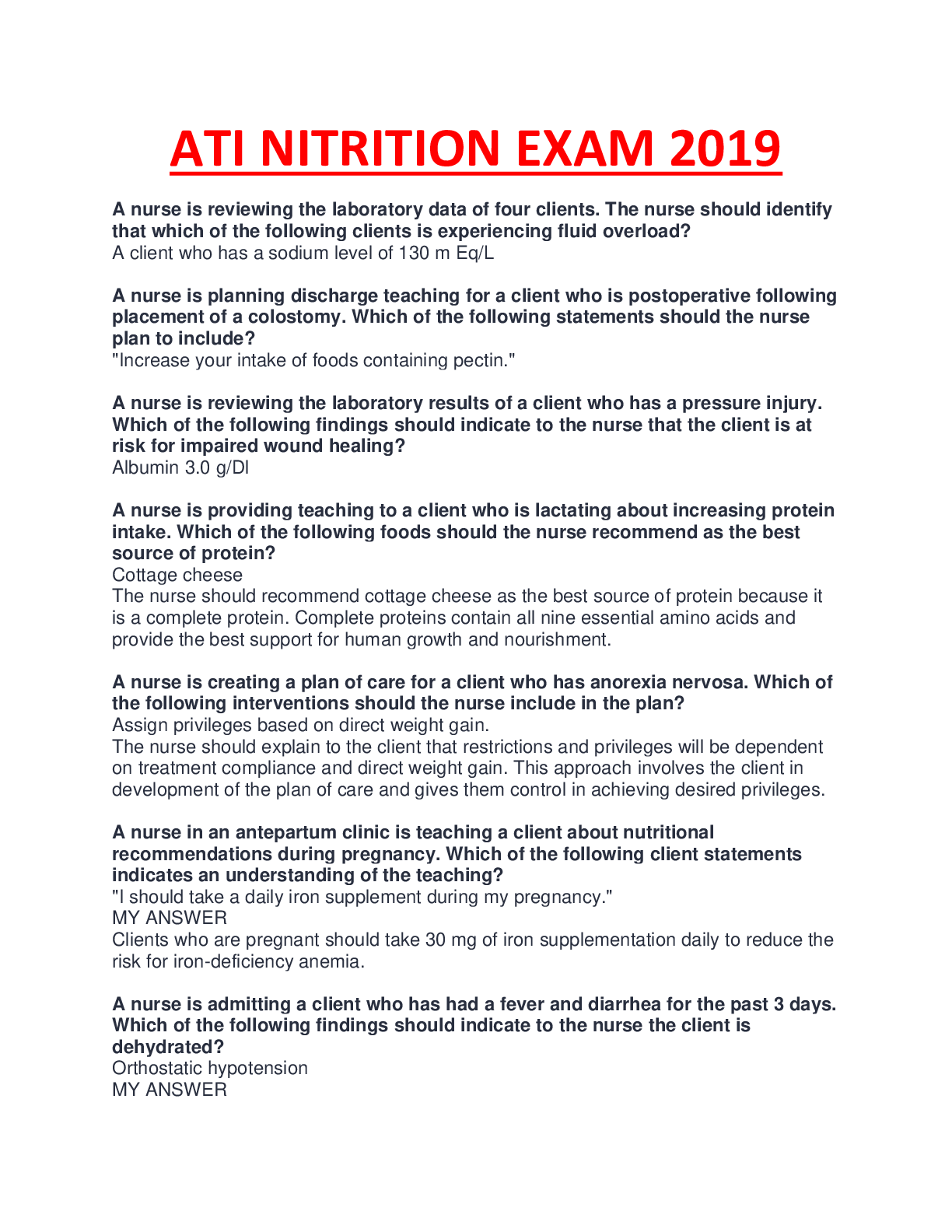 *NURSING > Other Study Resources. > ATI NUTRITION EXAM QUESTIONS AND ANSWERS COMPLETE GUIDE SOLUTION.