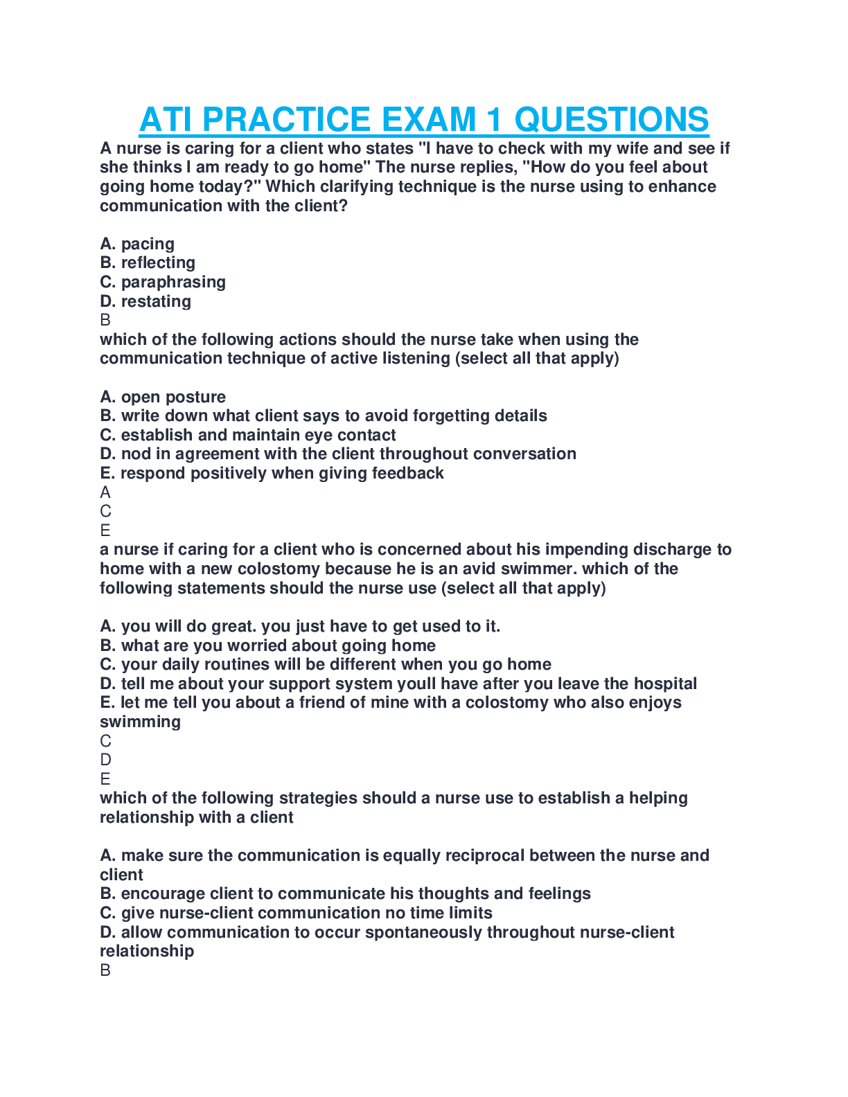 Health Care > Other Study Resources. > ATI PRACTICE EXAM 1 QUESTIONS AND ANSWERS COMPLETE GUIDE SOLUTION TO BOOST YOUR GRADES