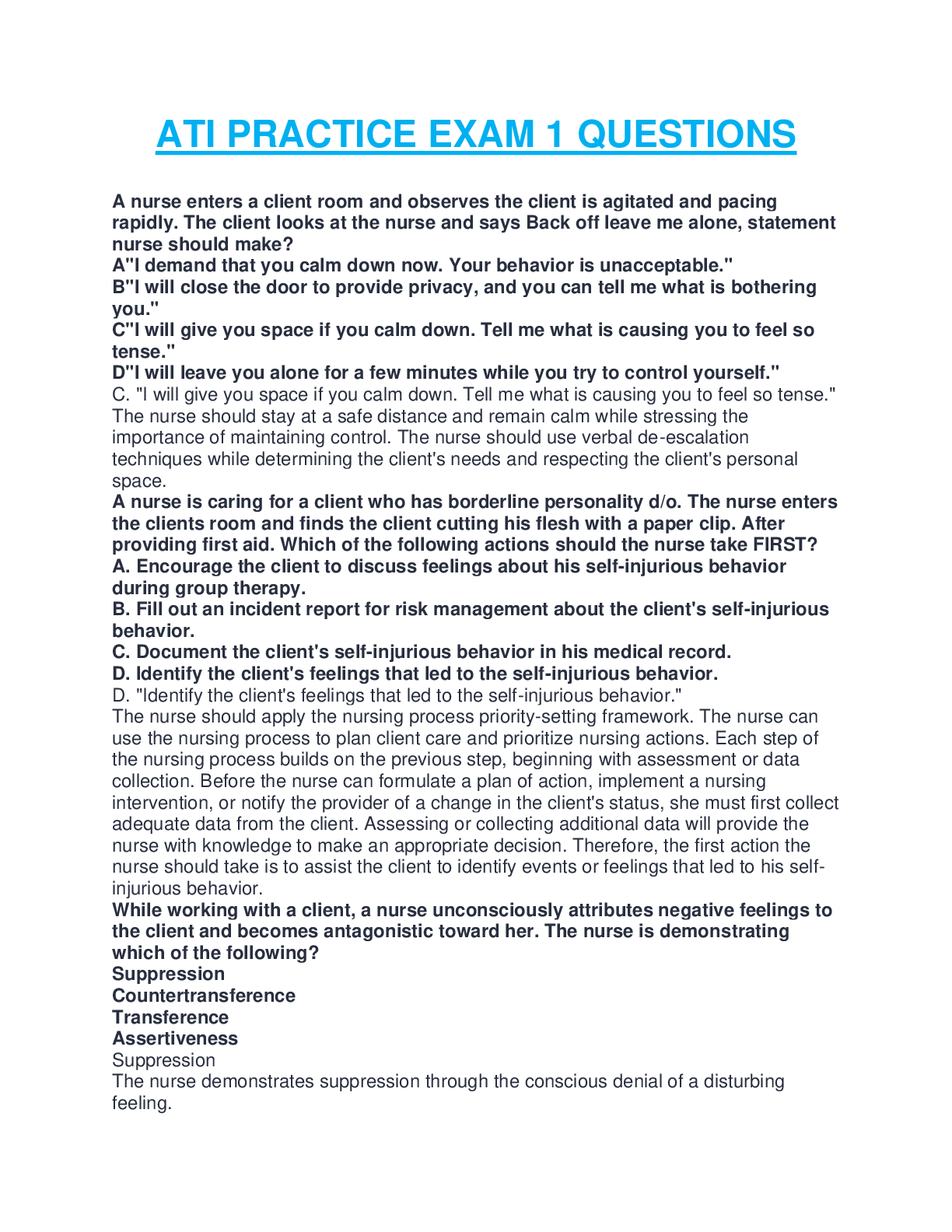 Health Care > Other Study Resources. > ATI PRACTICE EXAM 1 QUESTIONS AND ANSWERS COMPLETE GUIDE SOLUTION TO BOOST YOUR GRADES.