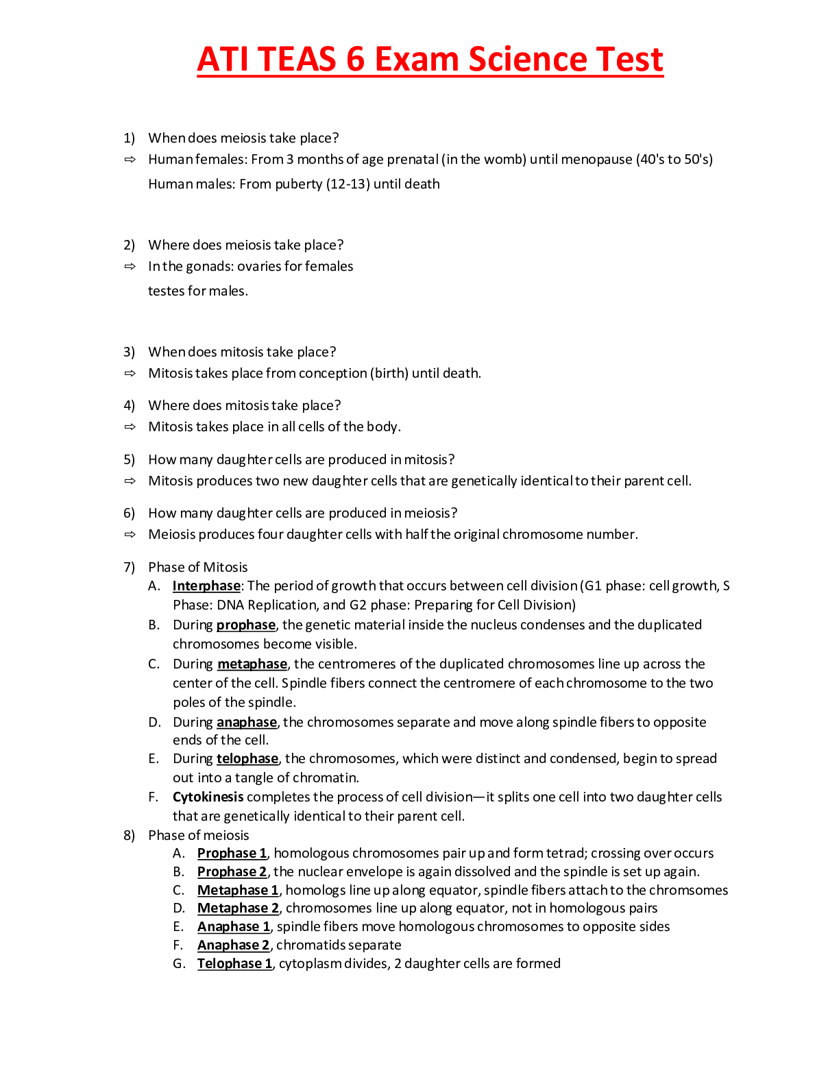 *NURSING > Other Study Resources. > ATI TEAS 6 Exam Science Practice Test Complete Questions & Answers with Rationale