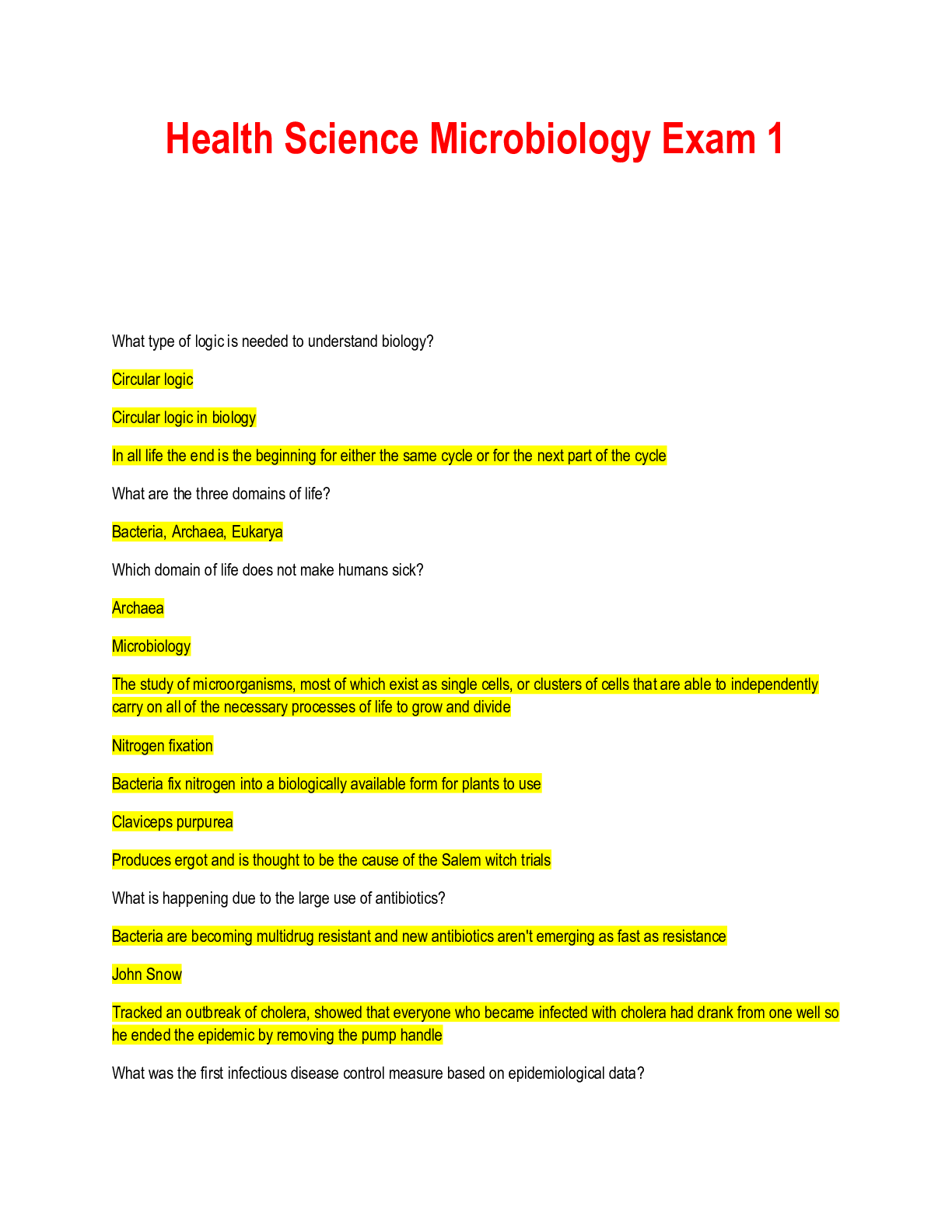 Micro Biology > Other Study Resources. > Health Science Microbiology Exam 1