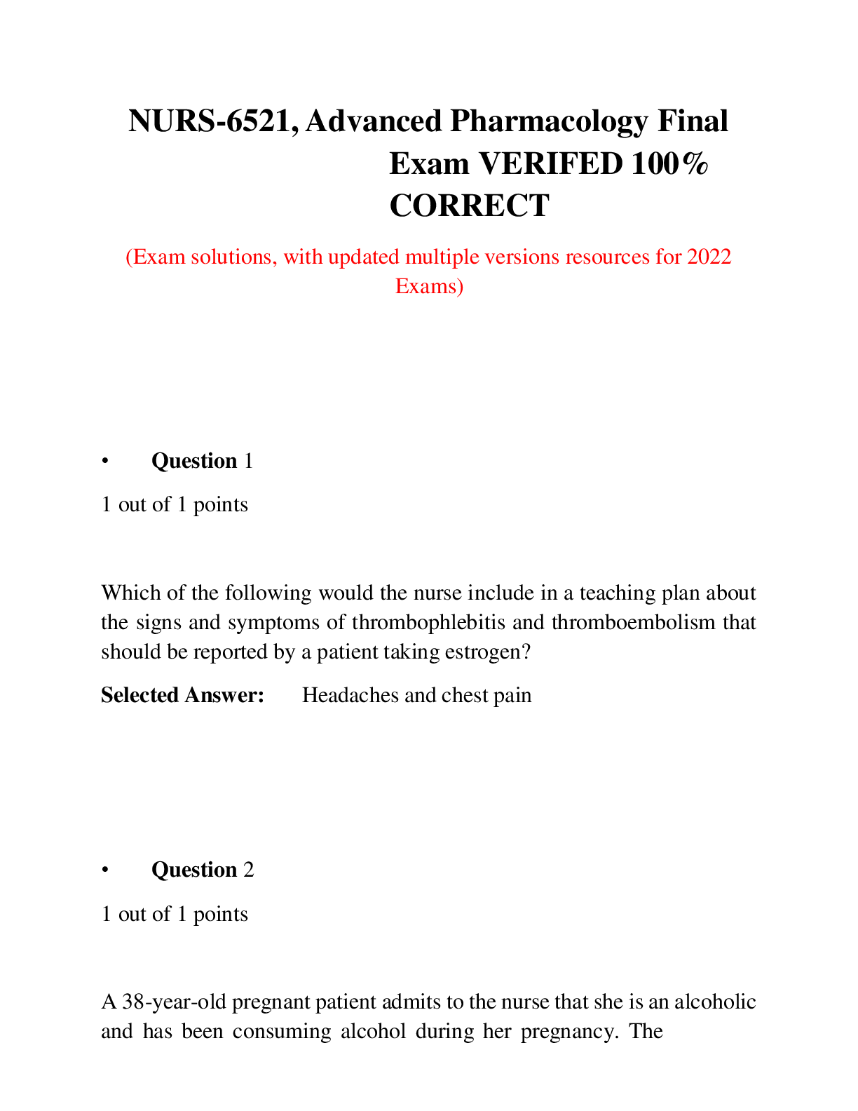 Health Care > ANSWERS AND COMMENTARIES > NURS-6521, Advanced Pharmacology Final Exam VERIFED 100% CORRECT