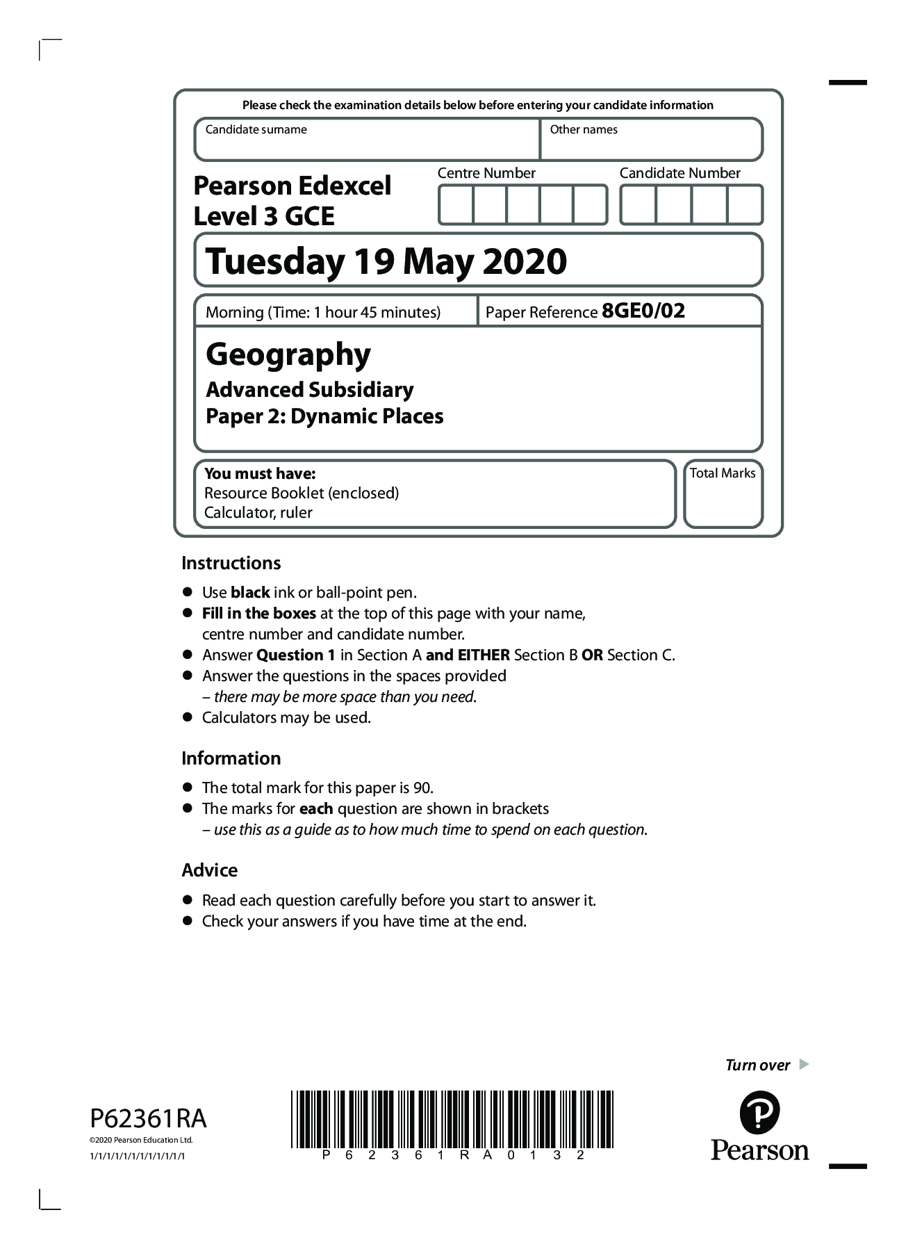 Geography > Edexcel Question Paper > Pearson Edexcel_AS Level Geography_8GE0/02 Question Paper 2020 | Paper 2: Dynamic Places
