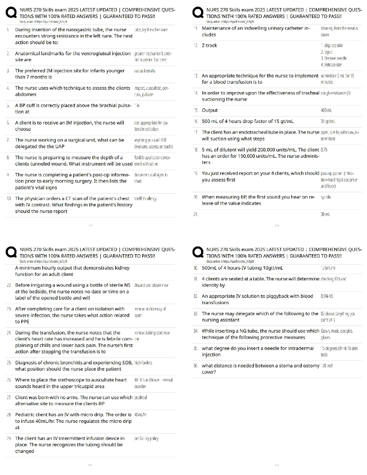 *NURSING > QUESTIONS & ANSWERS > NURS 270 Skills Exam 2025 Latest Updated / Score 100% / Practice Questions & Test Bank