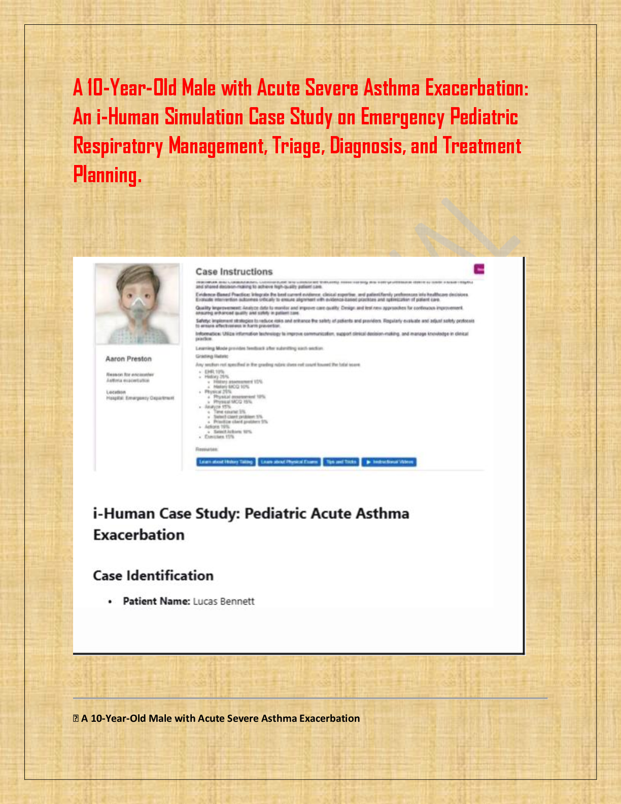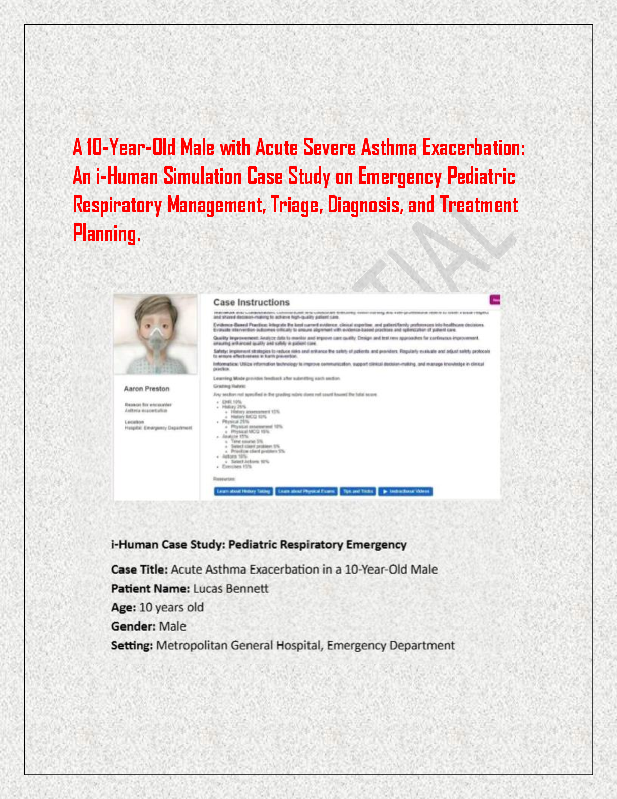 *NURSINGiHuman Case Studies  > A 10-Year-Old Male with Acute Severe Asthma Exacerbation: An i-Human Simulation Case Study on Emergency Pediatric Respiratory Management, Triage, Diagnosis, and Treatment Planning.