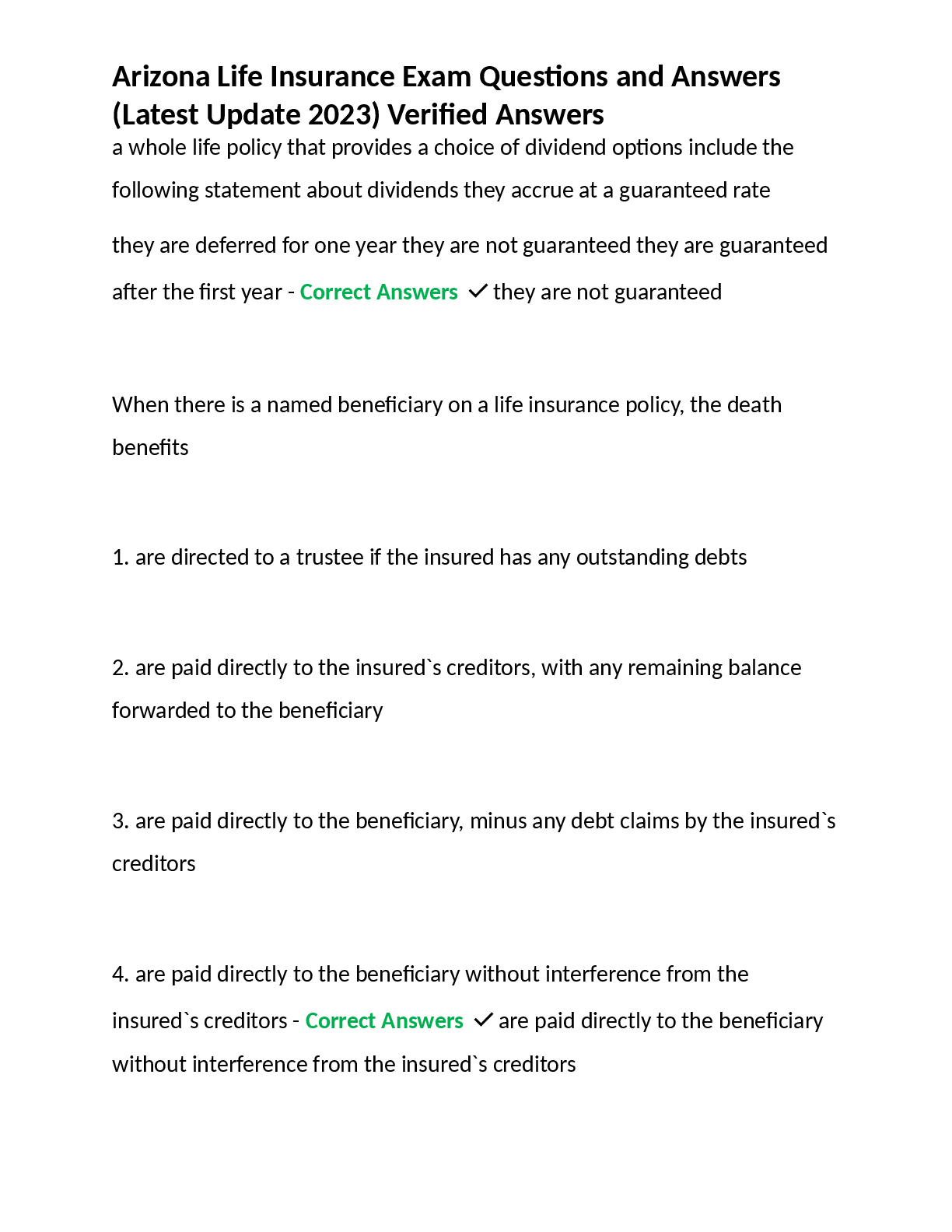 *NURSING > EXAM > Arizona Life Insurance Exam Questions and Answers (Latest Update 2023) Verified Answers